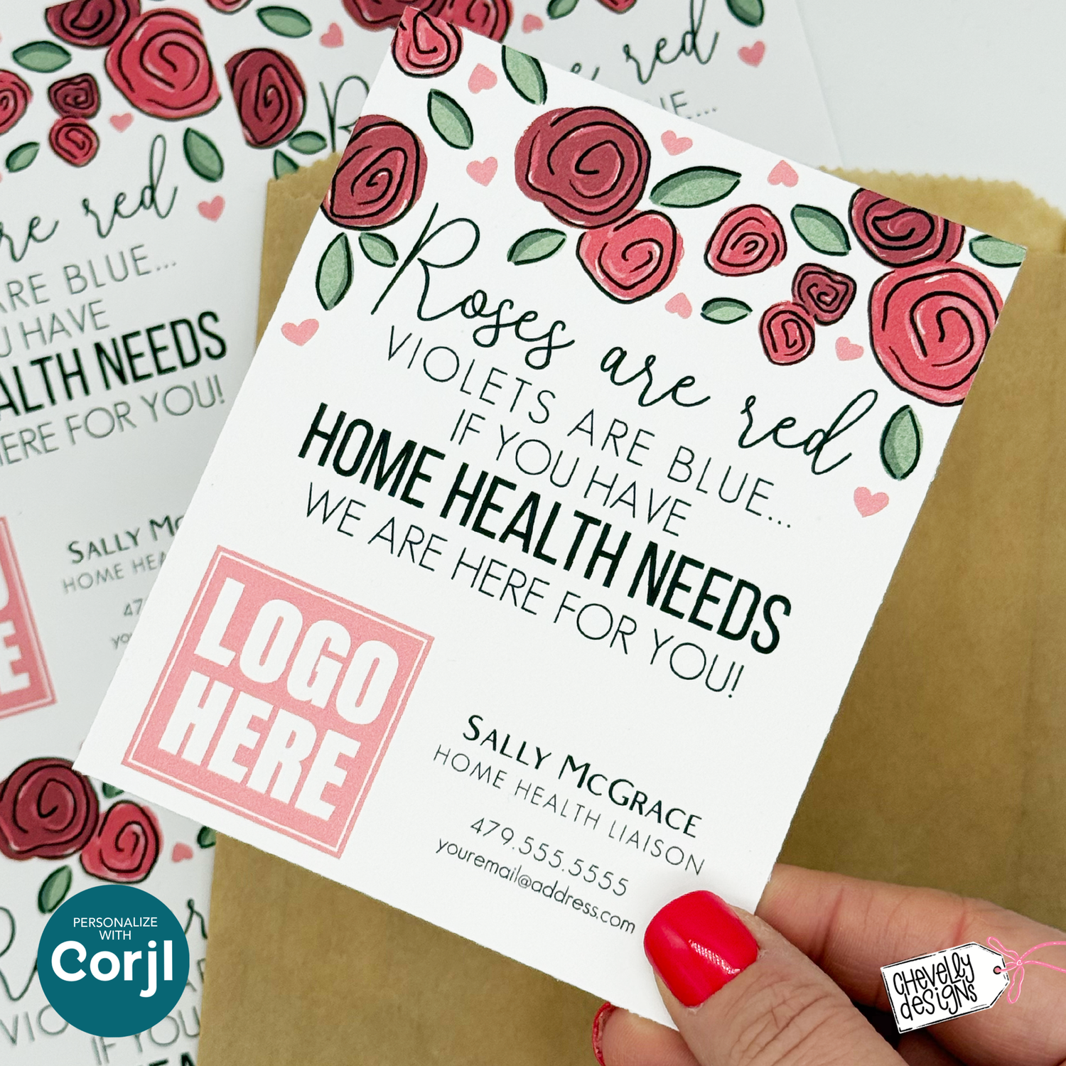 Editable Referral Gift Tag: Valentine Roses Home Health Marketing Label, Printable HTV014