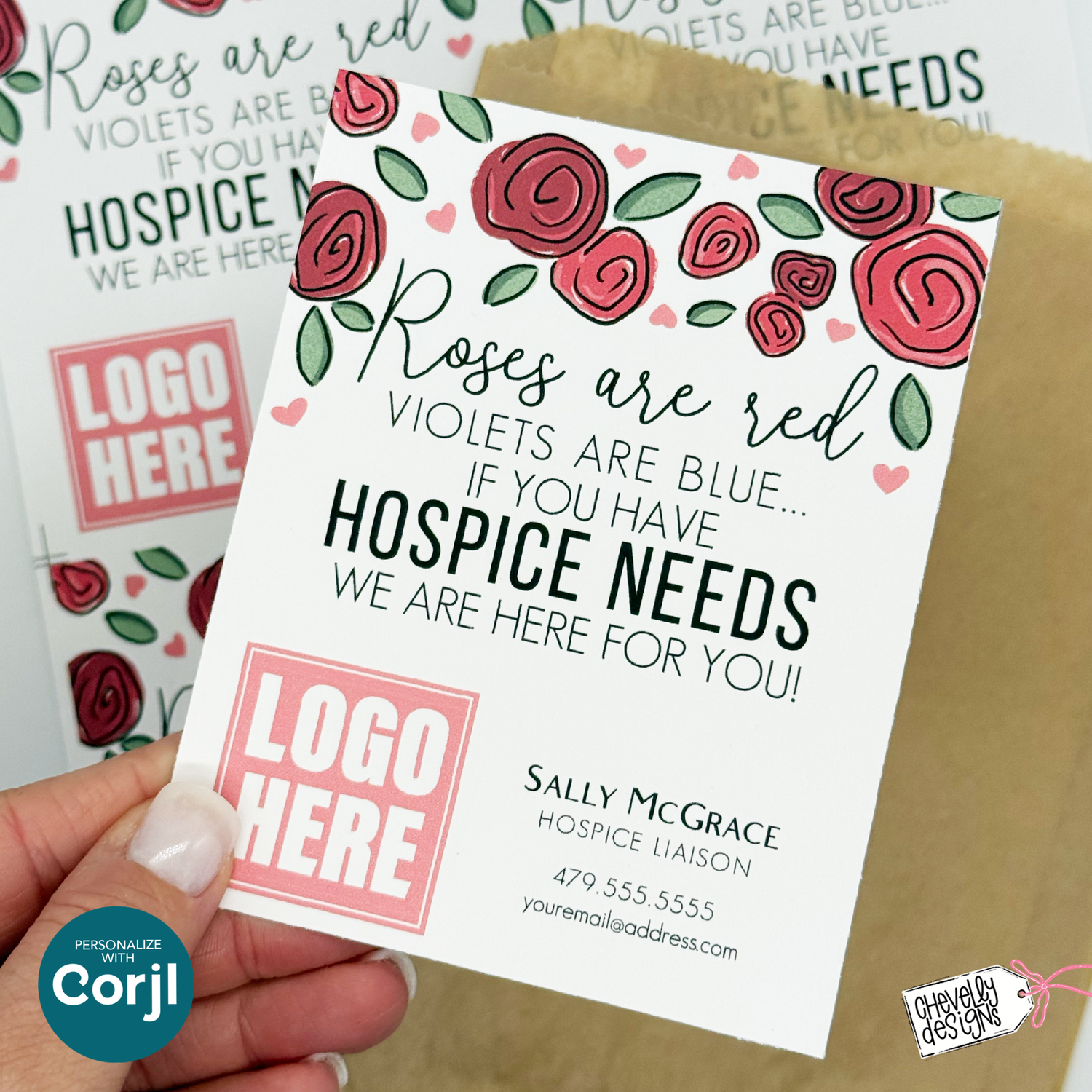 Editable Referral Gift Tag: Valentine Roses Hospice Marketing Label, Printable Digital File