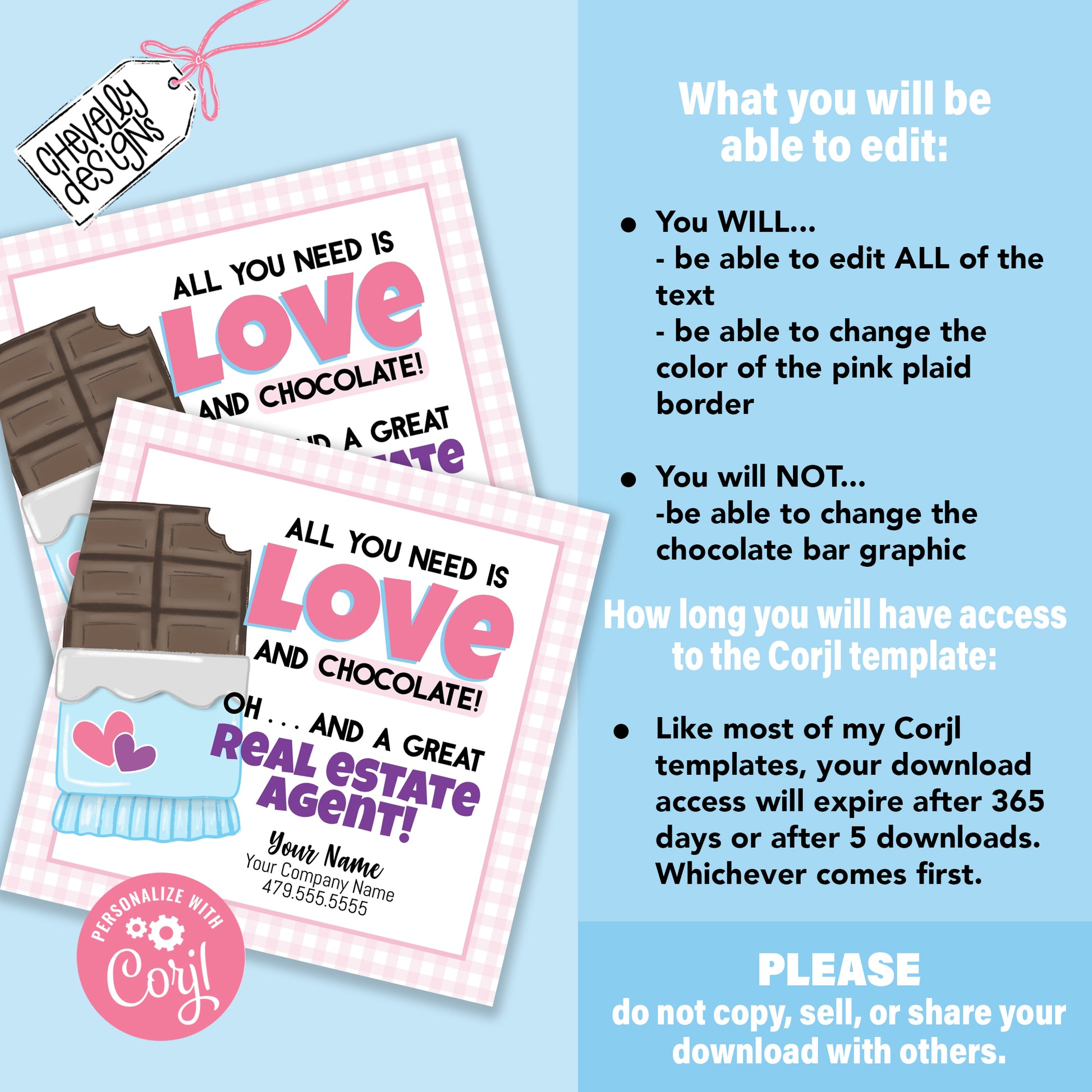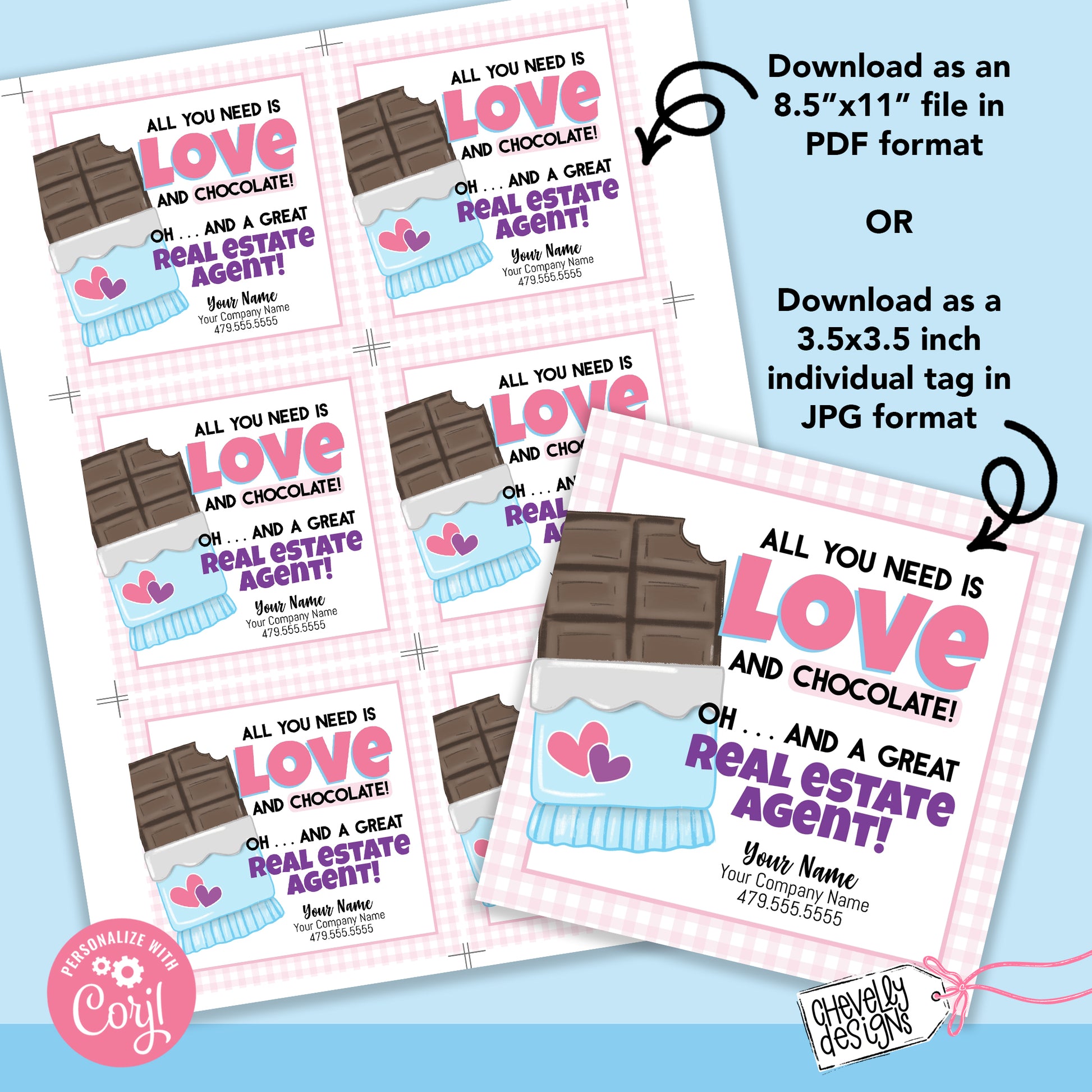 EDITABLE - All you need is love and chocolate - Real Estate Pop By Gift Tag - Printable Digital File