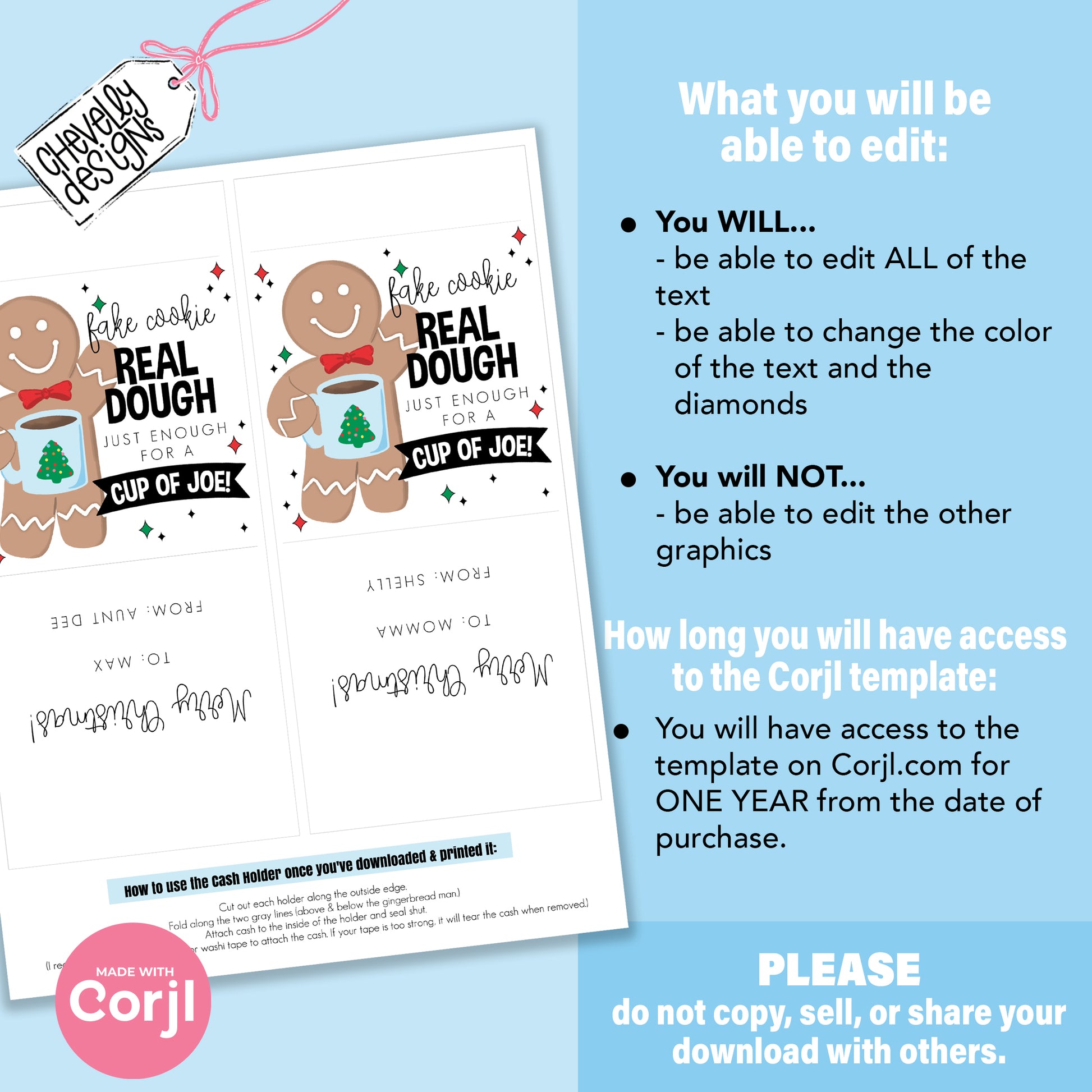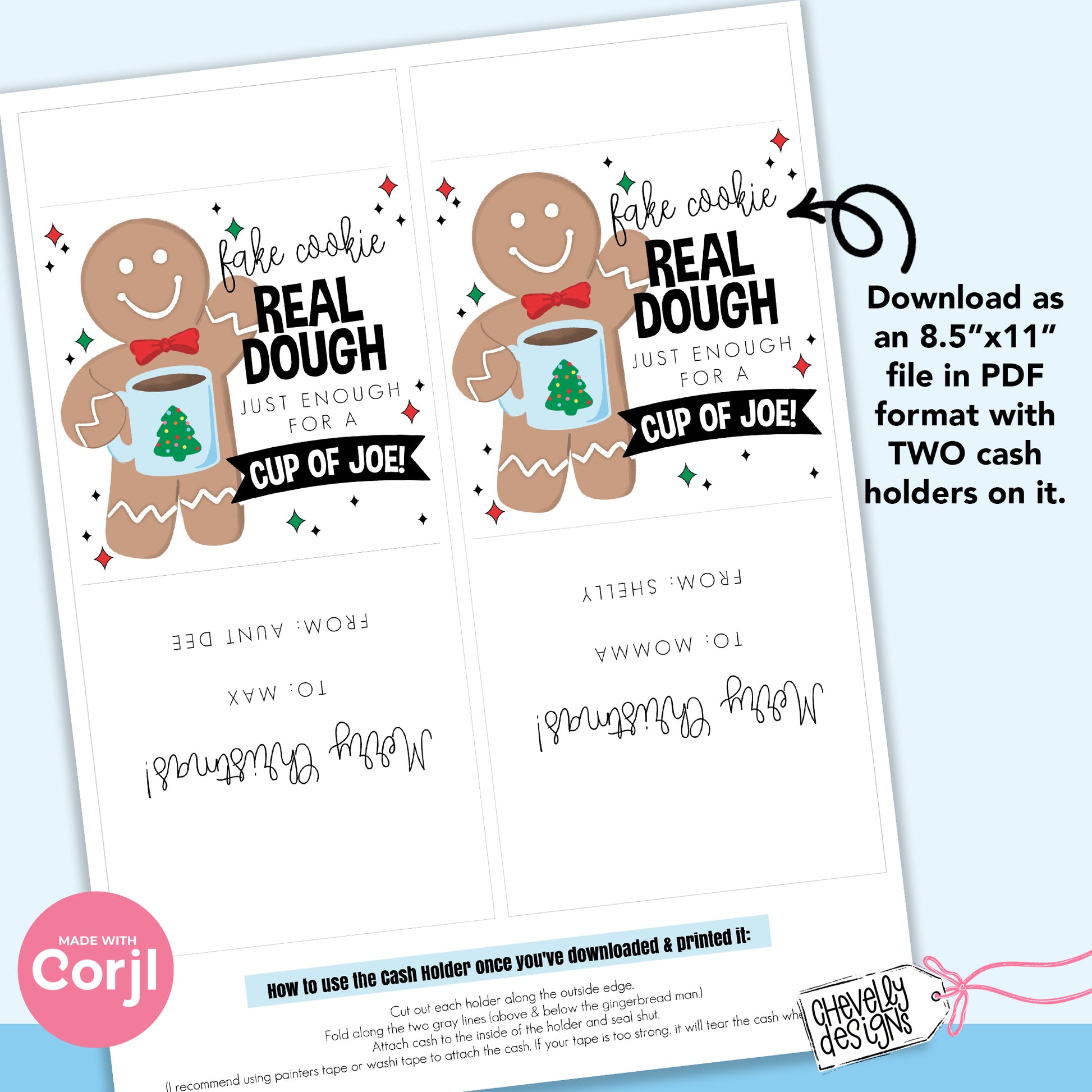 EDITABLE - Christmas Cash Gift Holder - Fake Cookie Real Dough Just Enough for a Cup of Joe - Printable Digital File