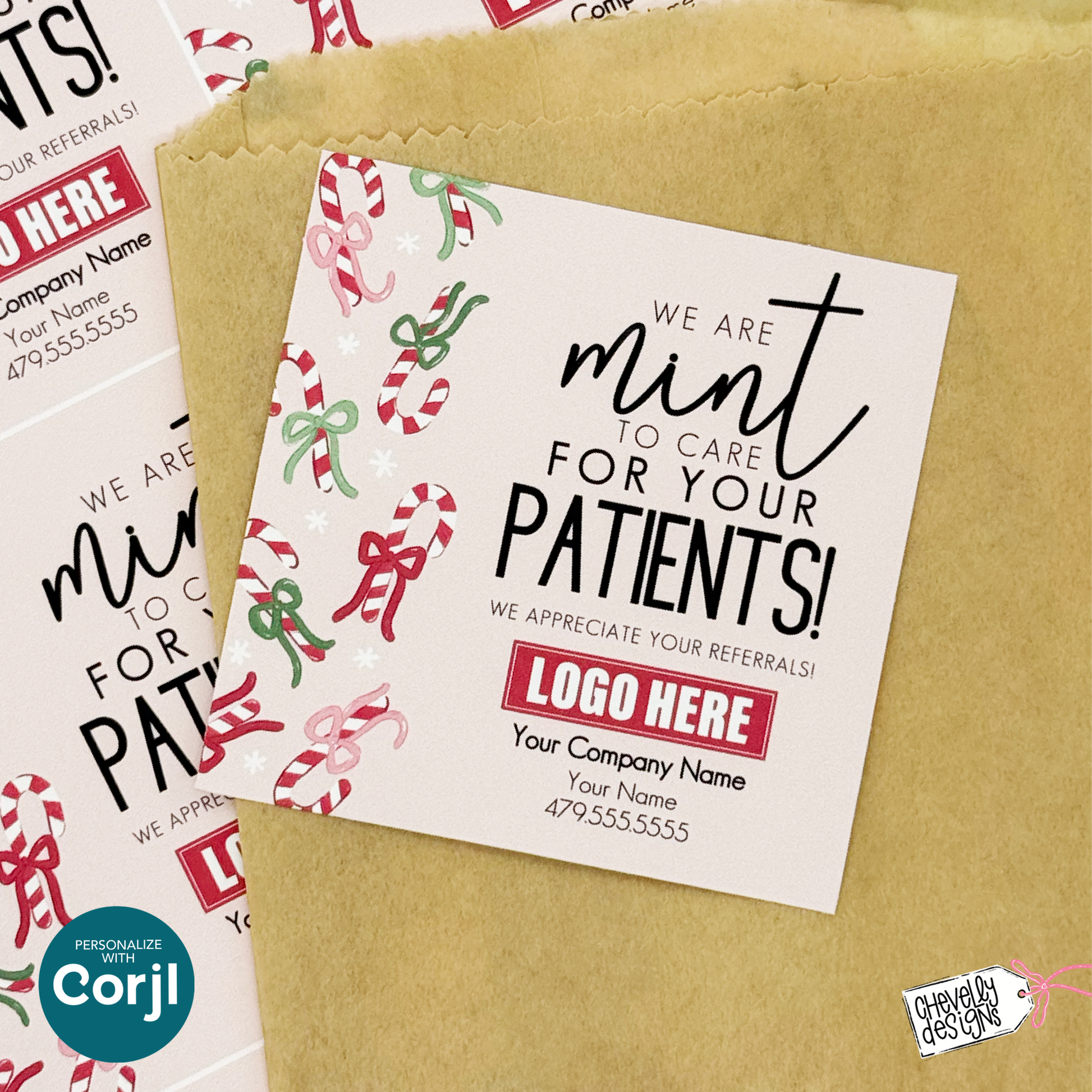 Show your referral partners just how “mint” to be your partnership is with this festive candy cane–themed Christmas referral gift tag! Featuring the cheerful saying “We are mint to care for your patients,” this printable tag is a sweet and simple way to spread holiday cheer while keeping referrals flowing.