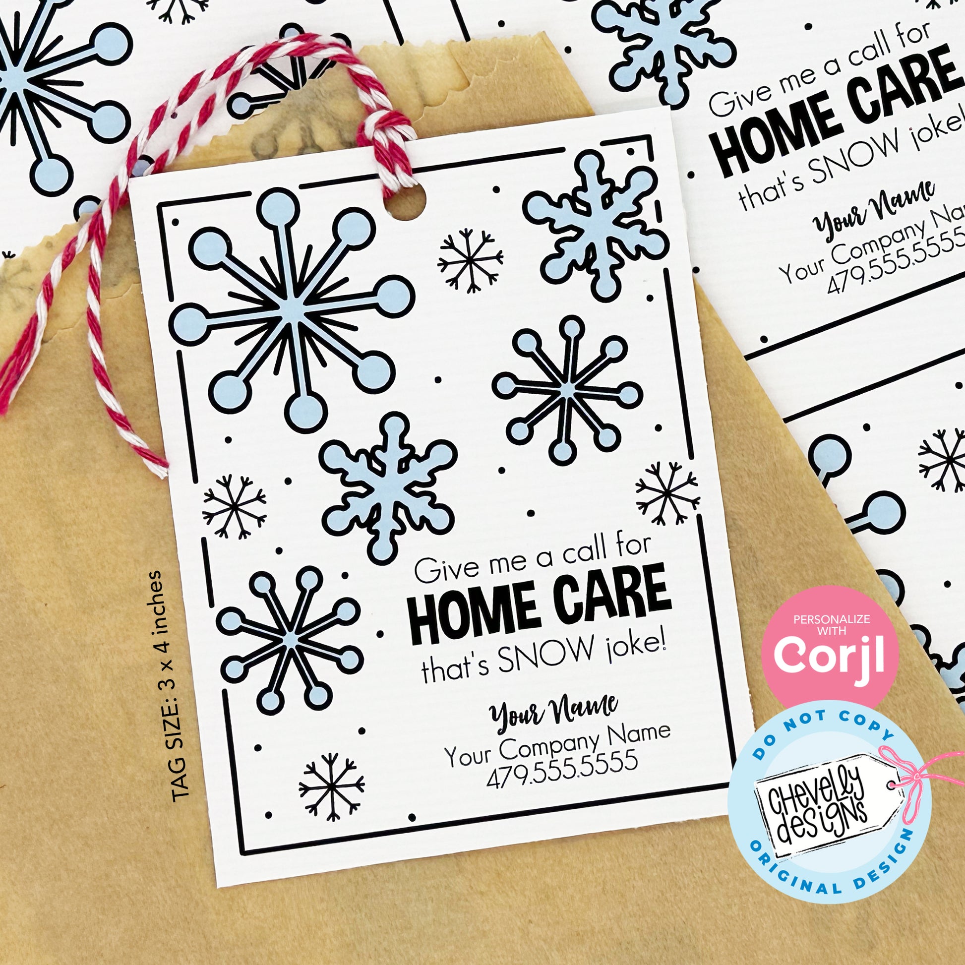 EDITABLE Christmas Referral Gift Tags - Home Care that's Snow Joke - Printable, Digital Download