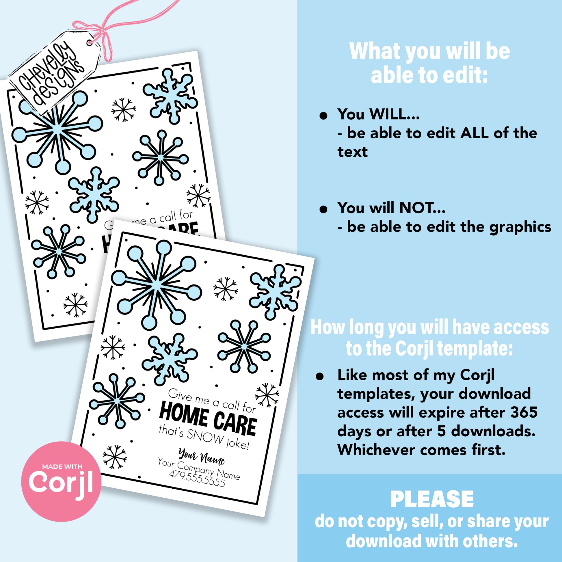 ★ ACCESS TO AN EDITABLE DESIGN ON CORJL for one year or 5 downloads, whichever comes first.