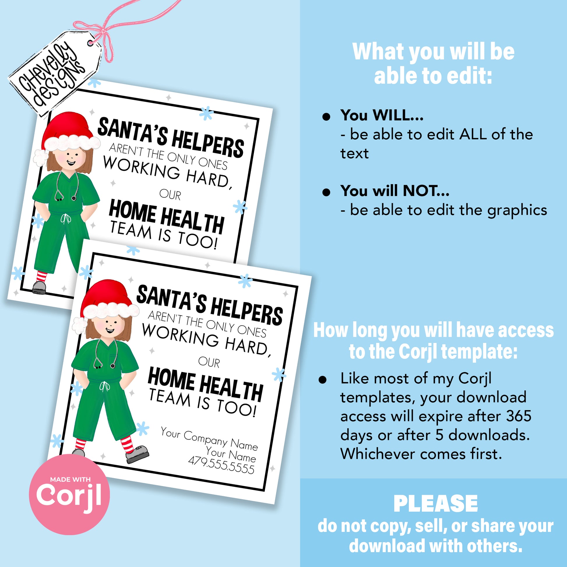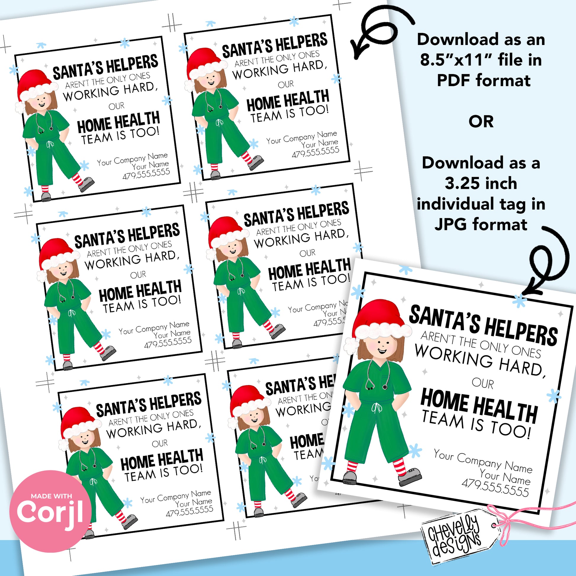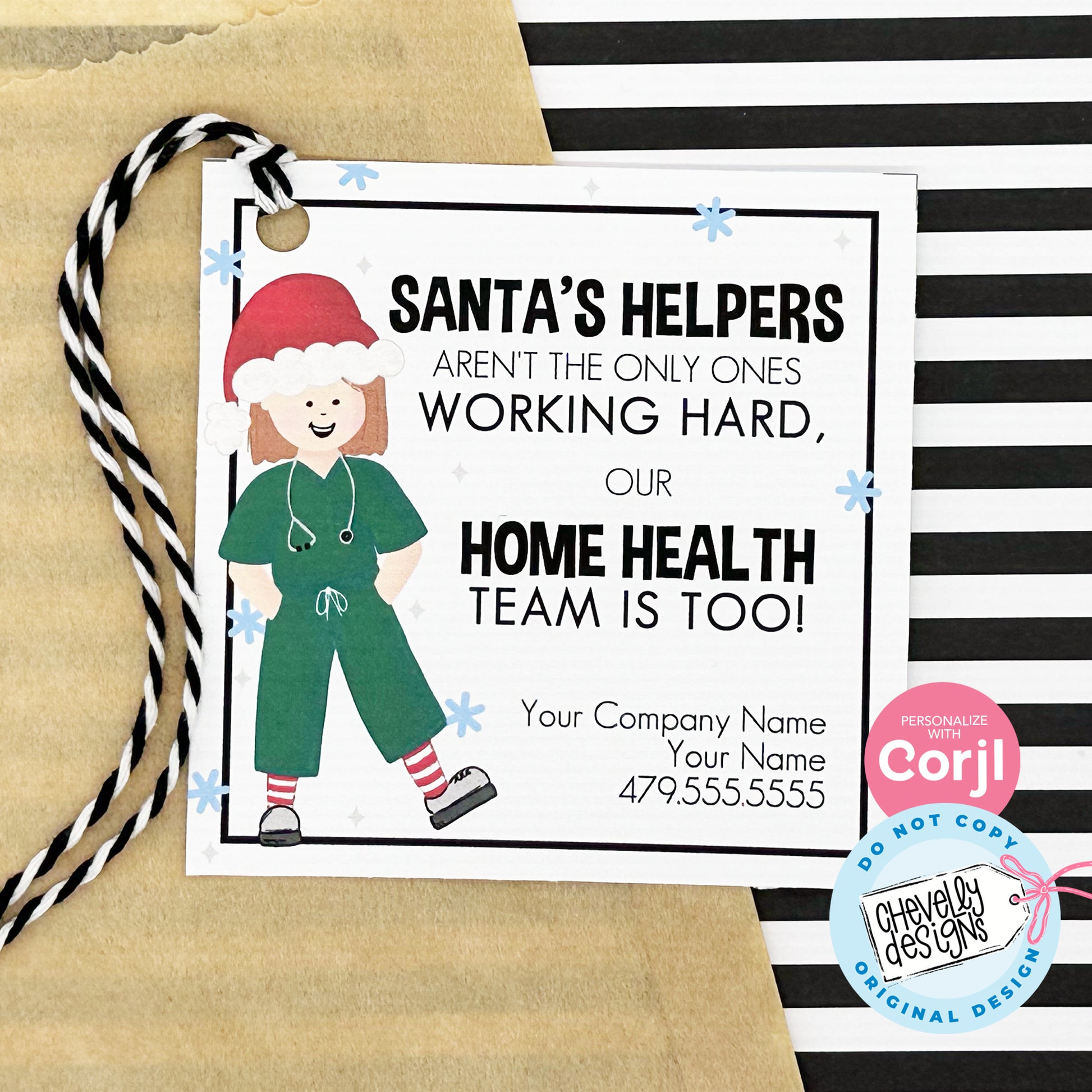 EDITABLE Christmas Referral Gift Tags - Santa's Helpers and Home Health - Holiday - Printable, Digital Download