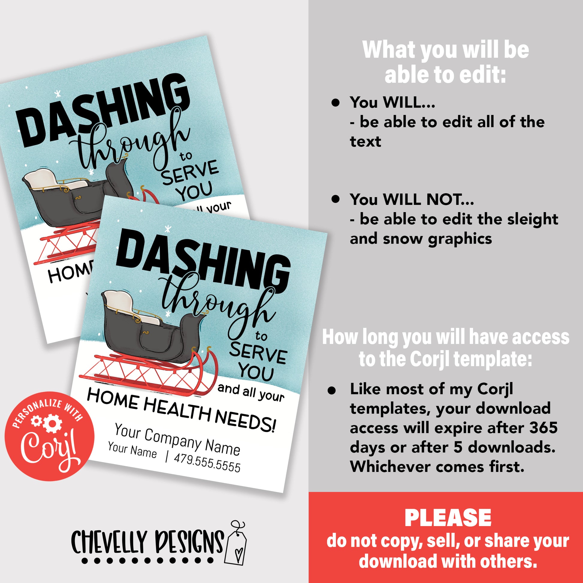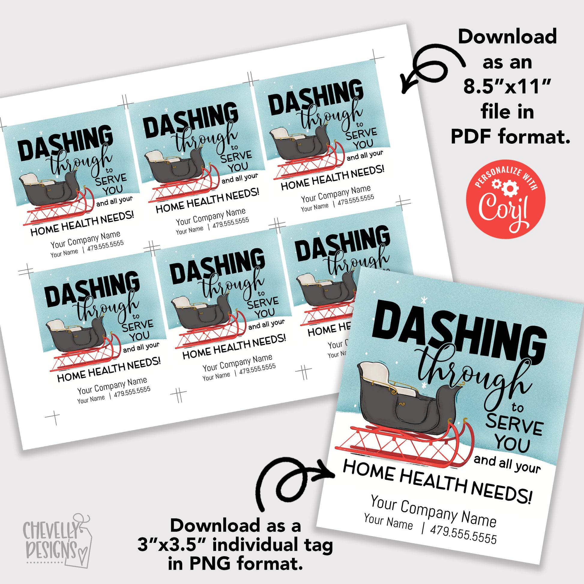 EDITABLE - Dashing Through To Serve You - Sleigh Home Health Business Referral Gift Tags - Printable Digital File