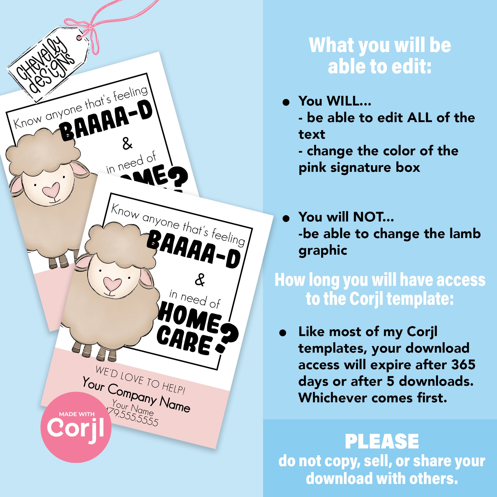 EDITABLE - Feeling Baaa-d and need Home Care - Easter Sheep Referral Gift Tag - Printable Digital File