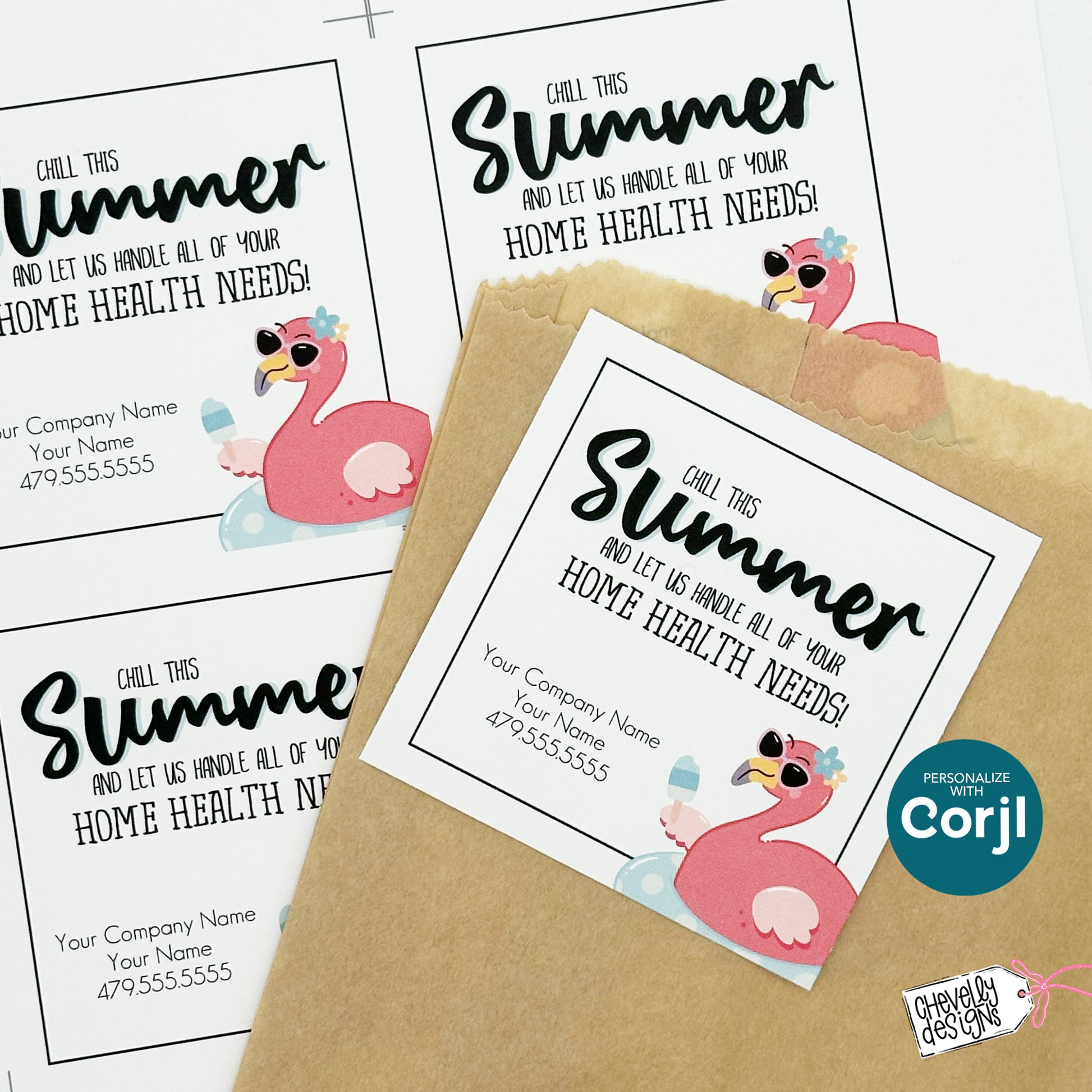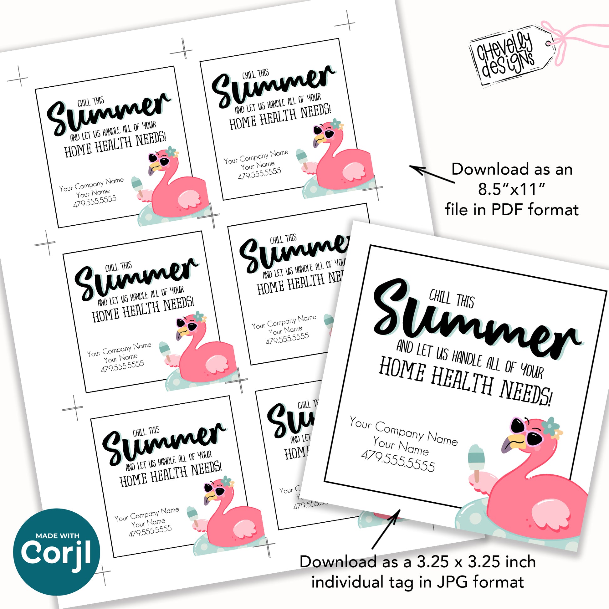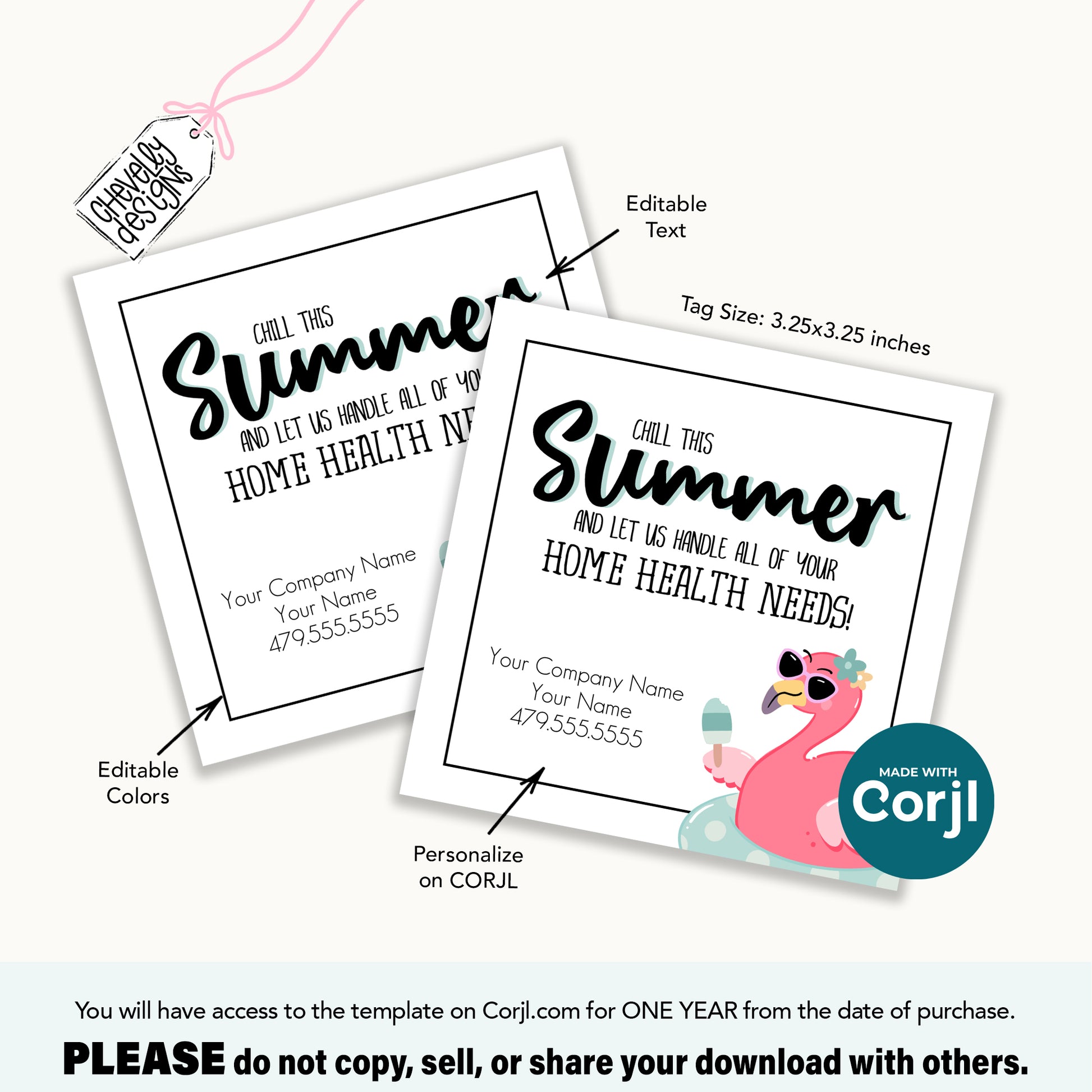 Editable Flamingo Referral Tag | Chill This Summer | Printable Summer Thank You Gift Tag | Digital File