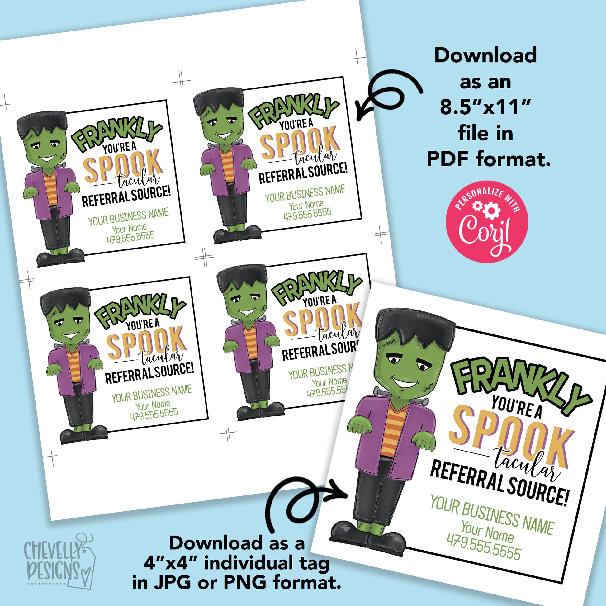 Editable - Frankly, You're a Spook-tacular Referral Source - Business Gift Tags - Printable Digital File