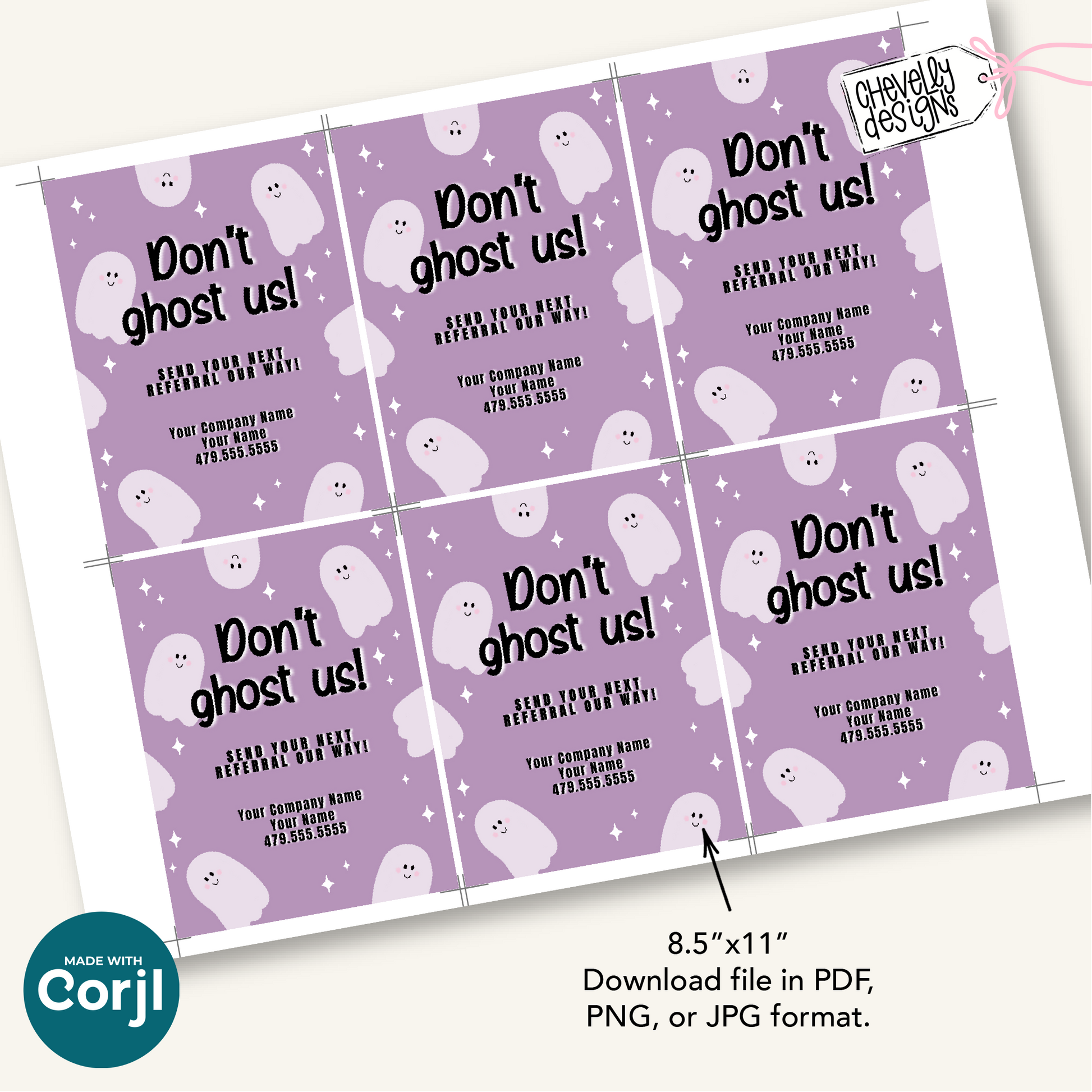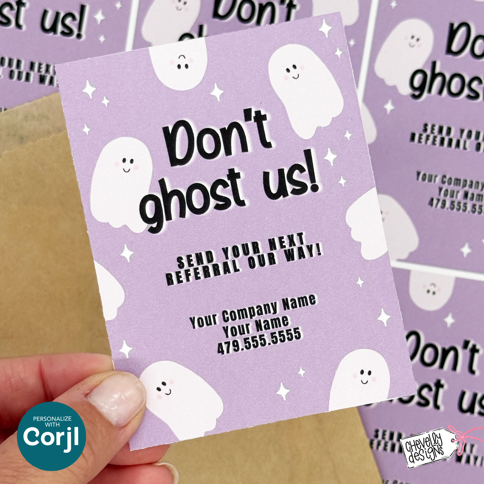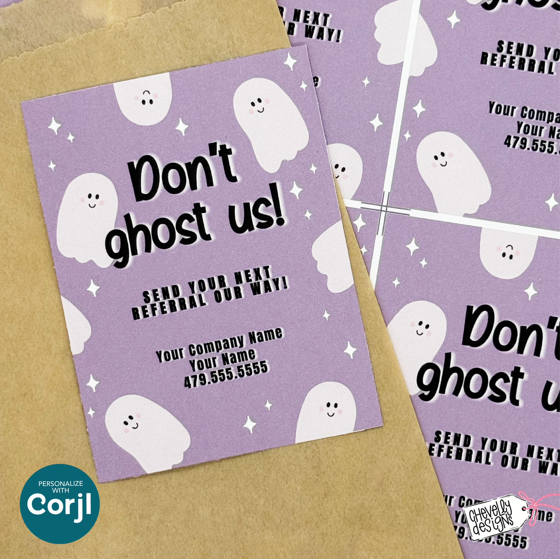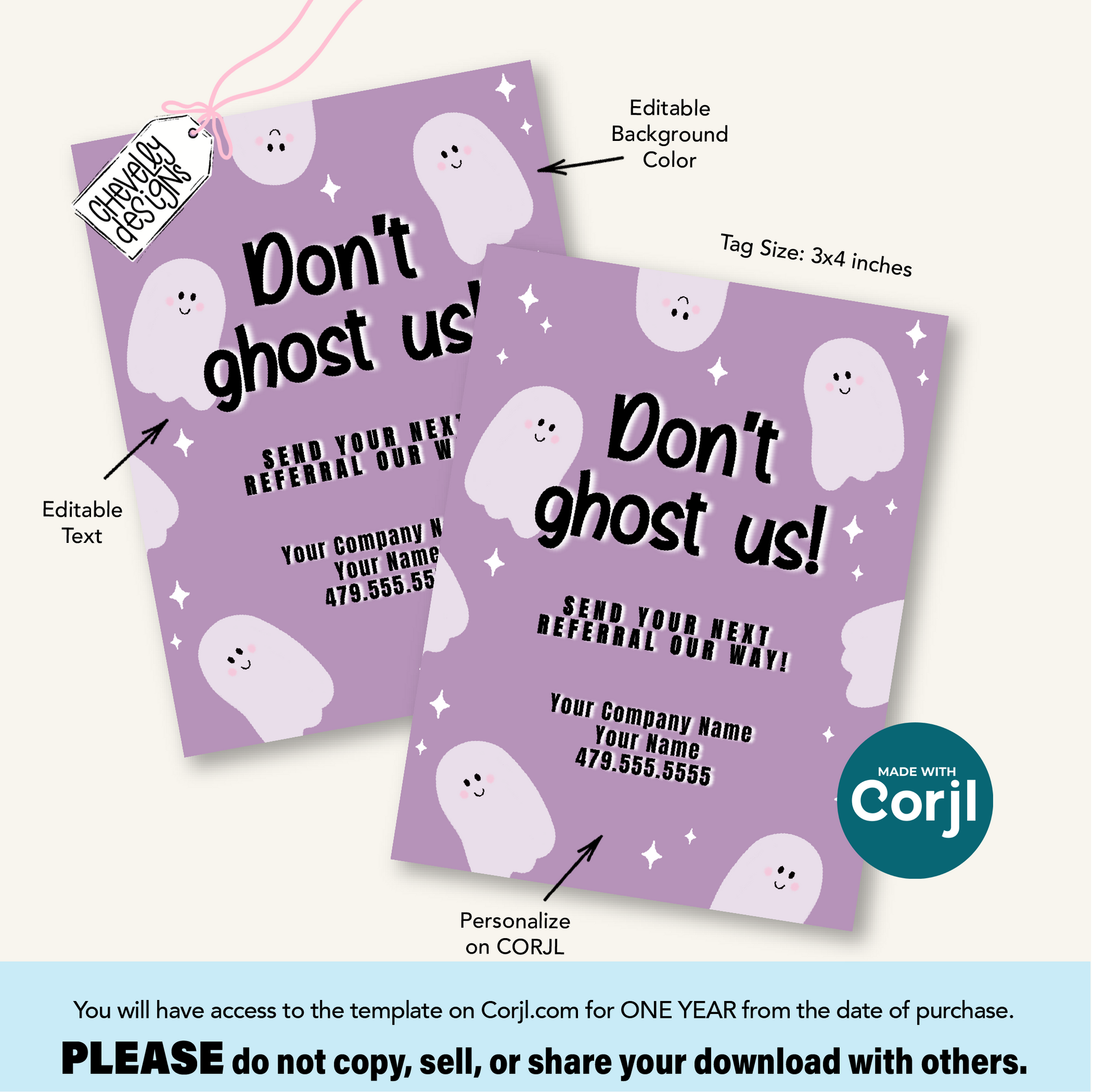 EDITABLE Halloween Referral Gift Tag - Don't Ghost Us - Printable Marketing Labels - Digital File