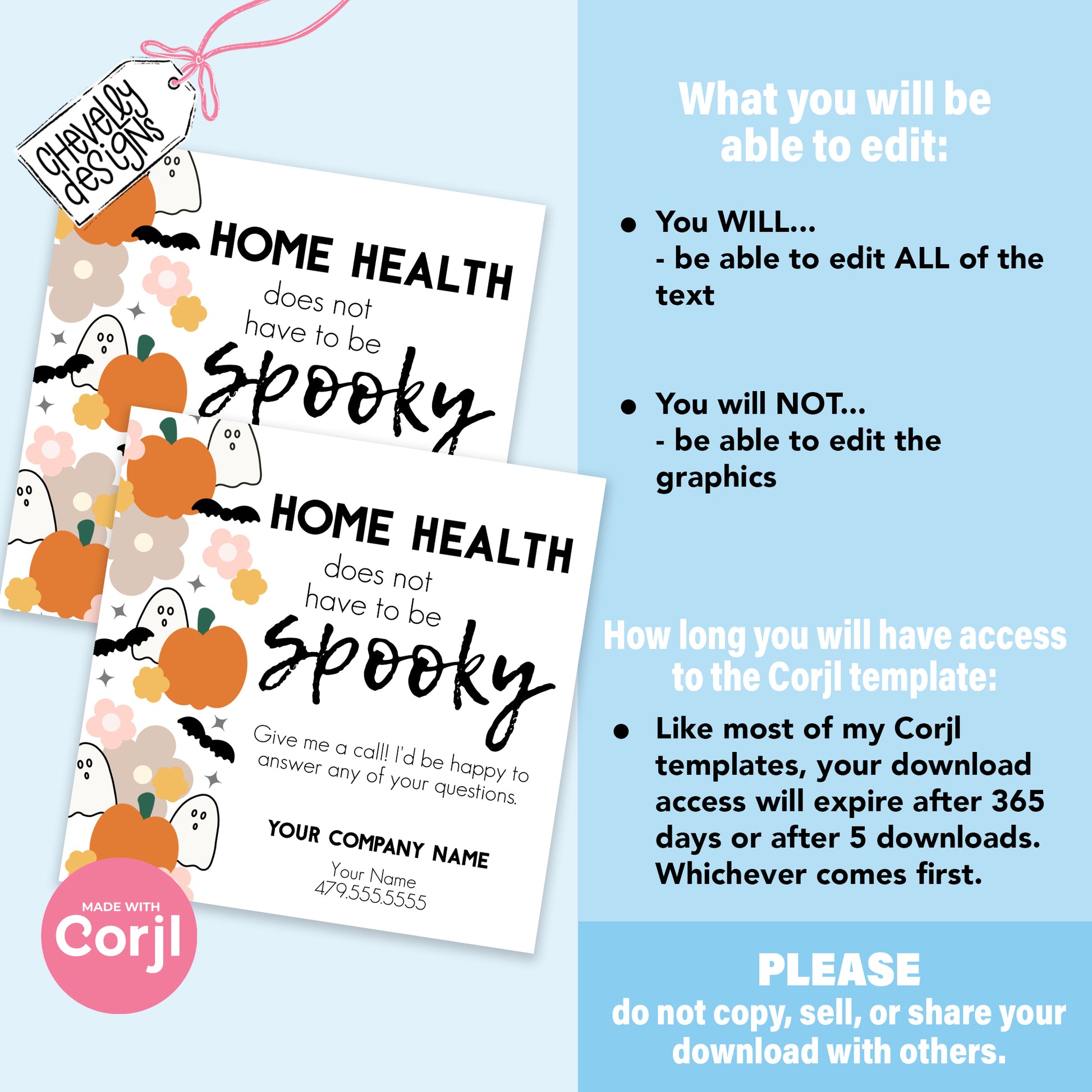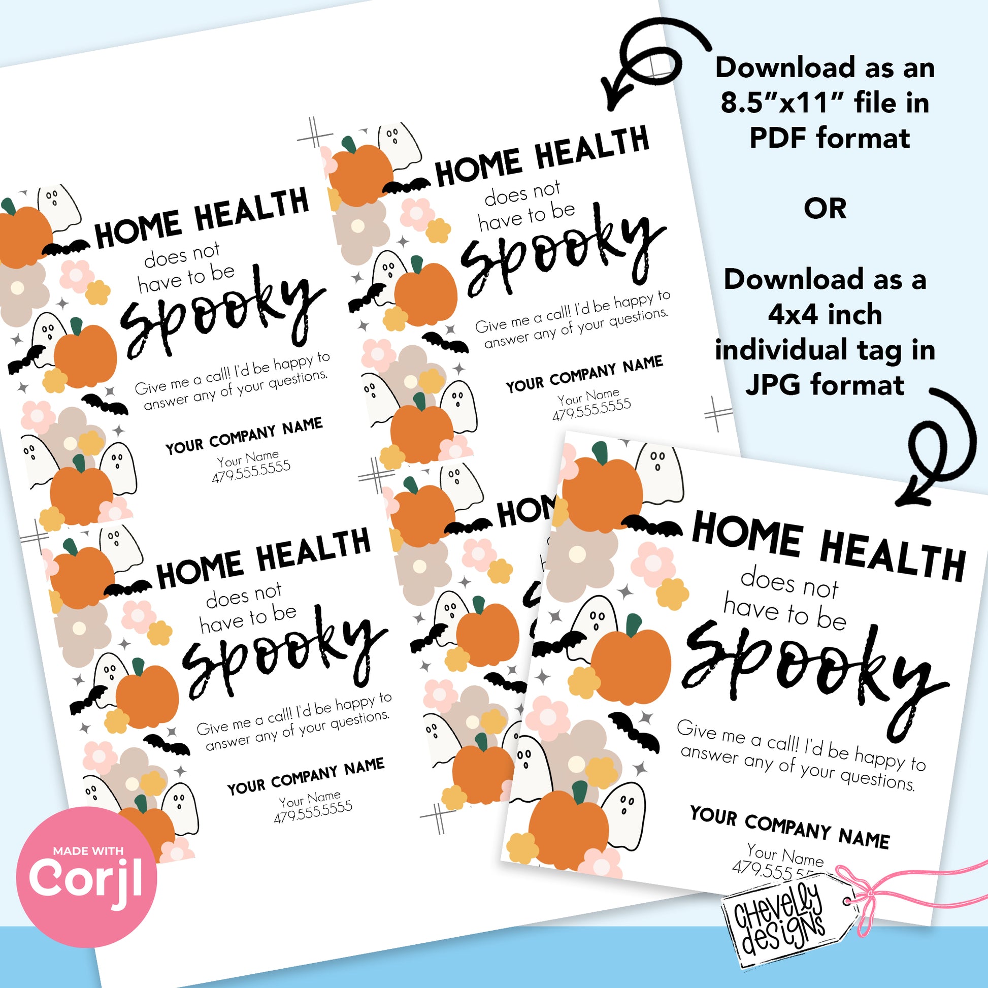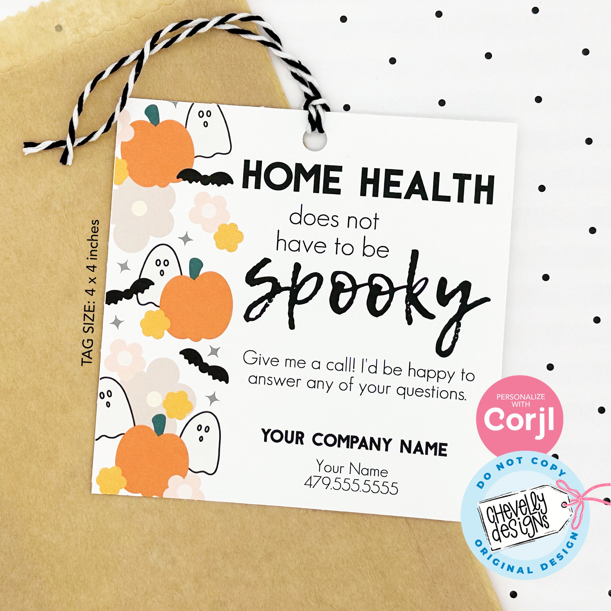 EDITABLE Halloween Referral Gift Tag - Home Health not Spooky - Printable Digital File