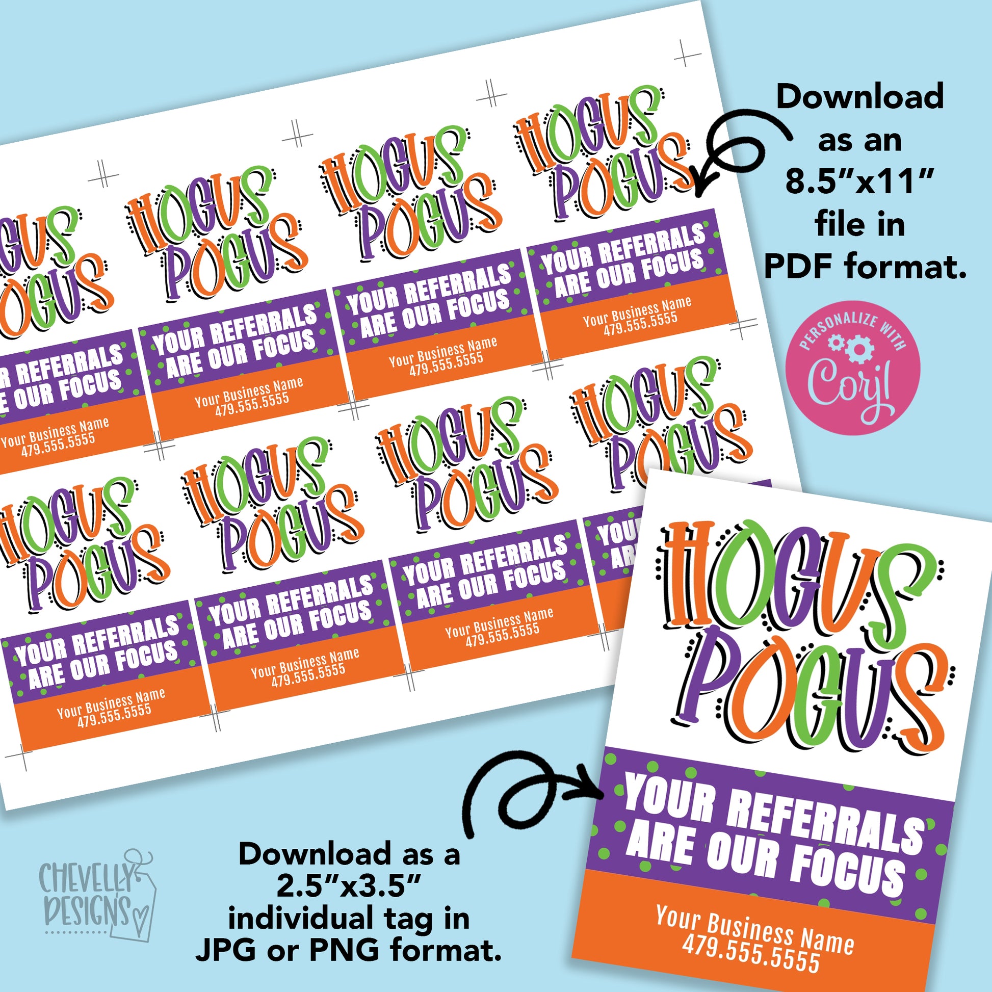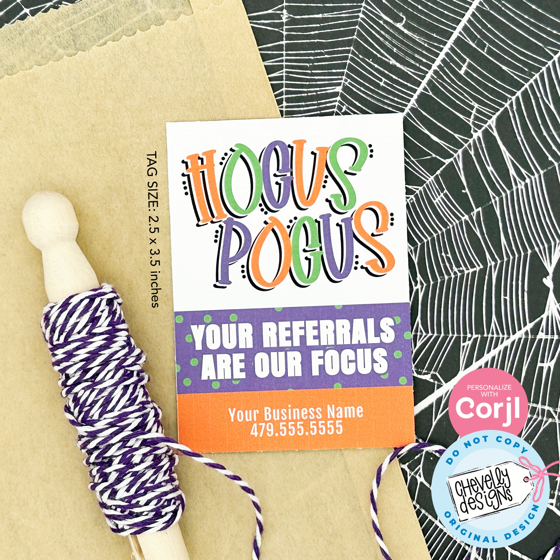 EDITABLE - Hocus Pocus Your Referrals are Our Focus Gift Tags - Printable Digital File