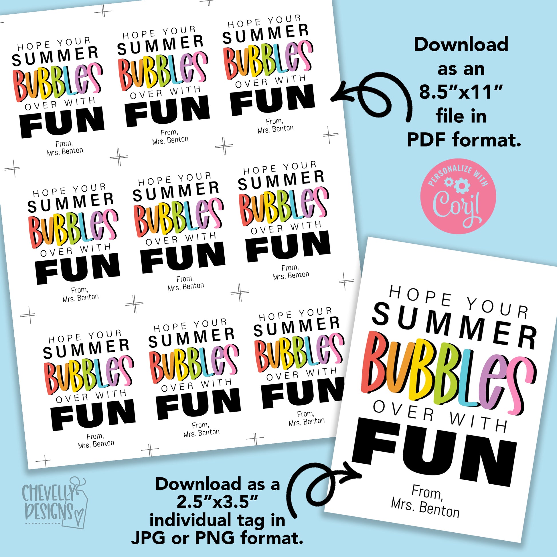 Editable - Hope Your Summer Bubbles Over with Fun - End of School Student Gift Tags - Printable Digital File