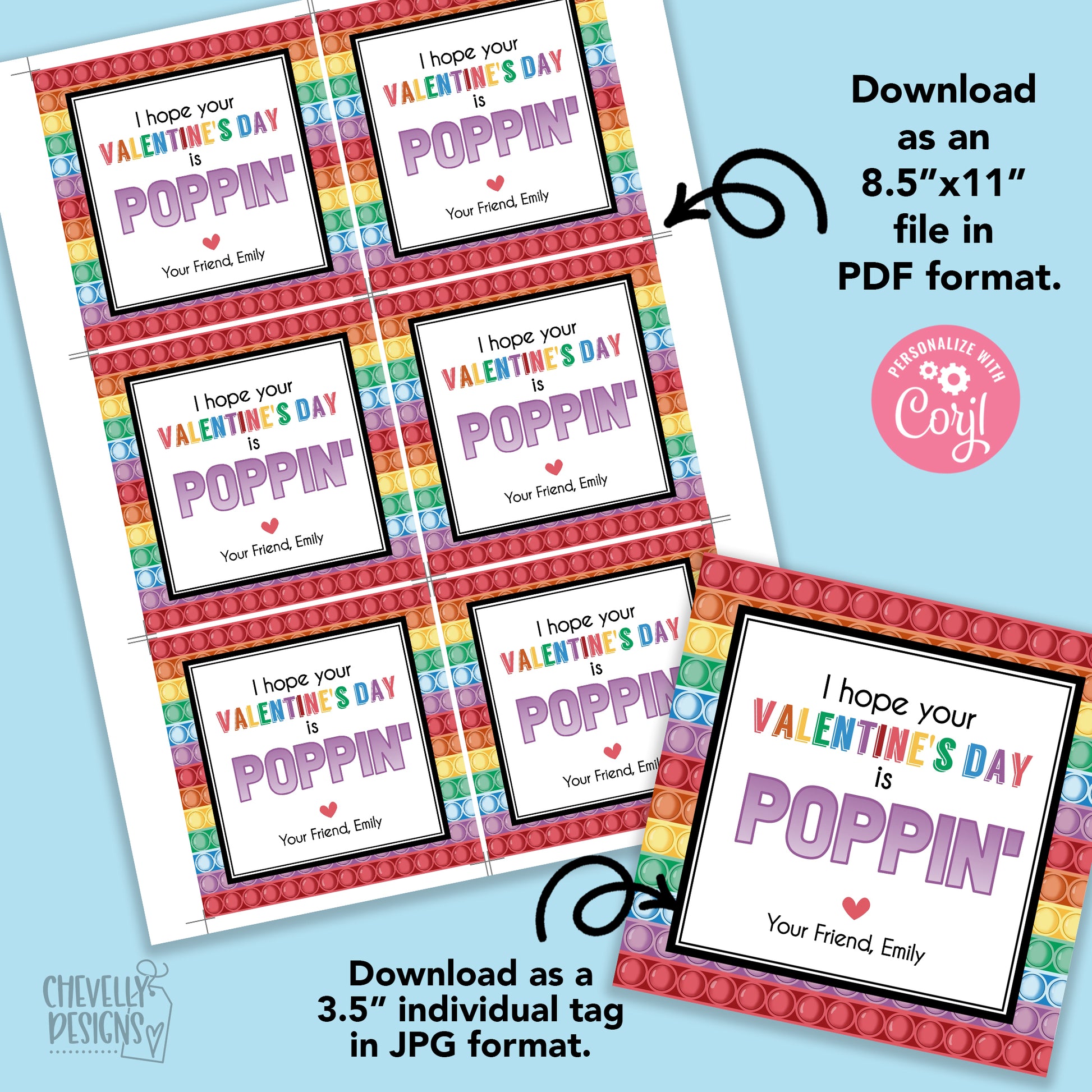 Bring the fun to your Valentine’s Day celebration! These EDITABLE “I hope your Valentine’s Day is Poppin” cards add a special touch to your classmate party gifts.