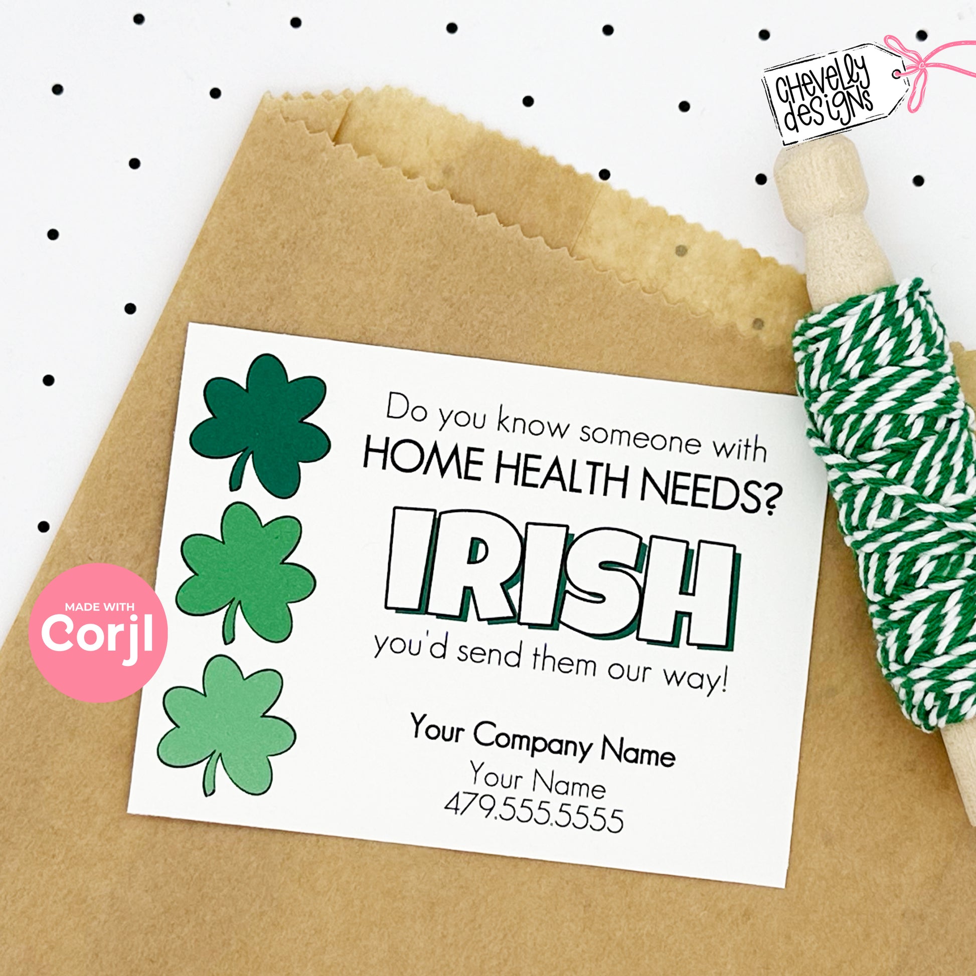 EDITABLE - Irish you'd send them our way - St Patricks Day Home Health Referral Gift Tag - Printable Digital File