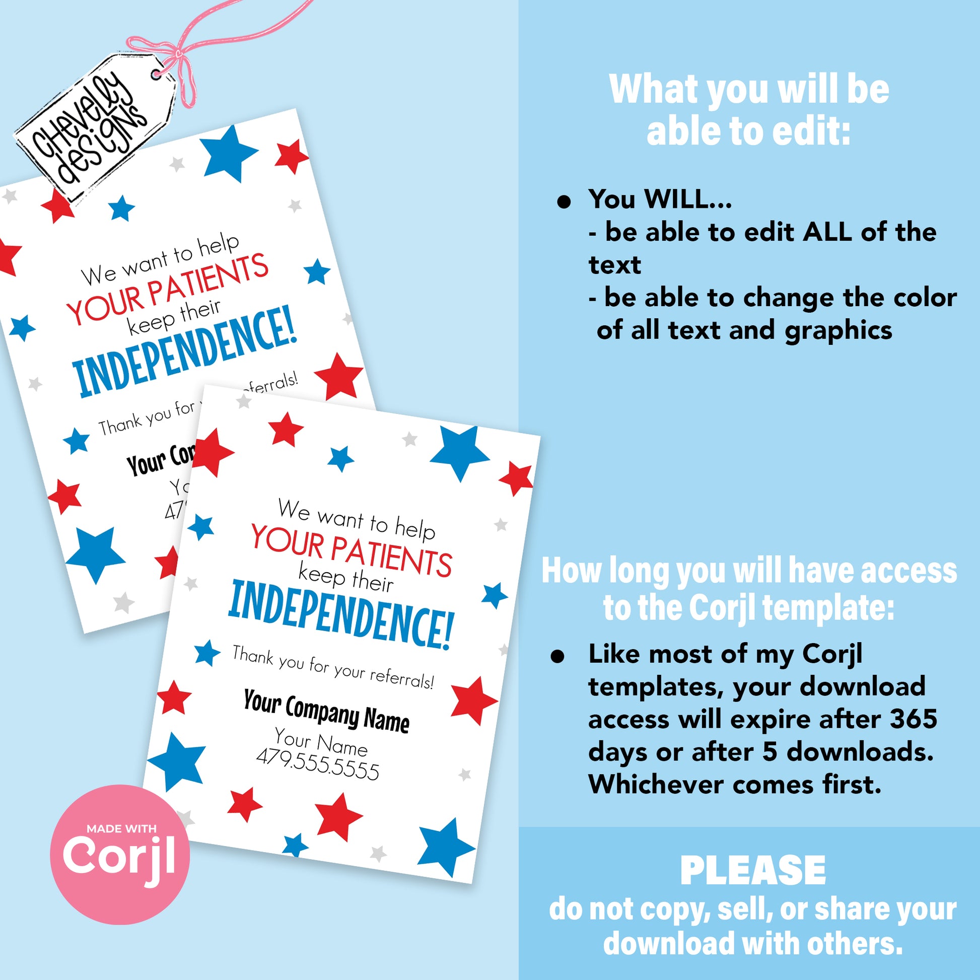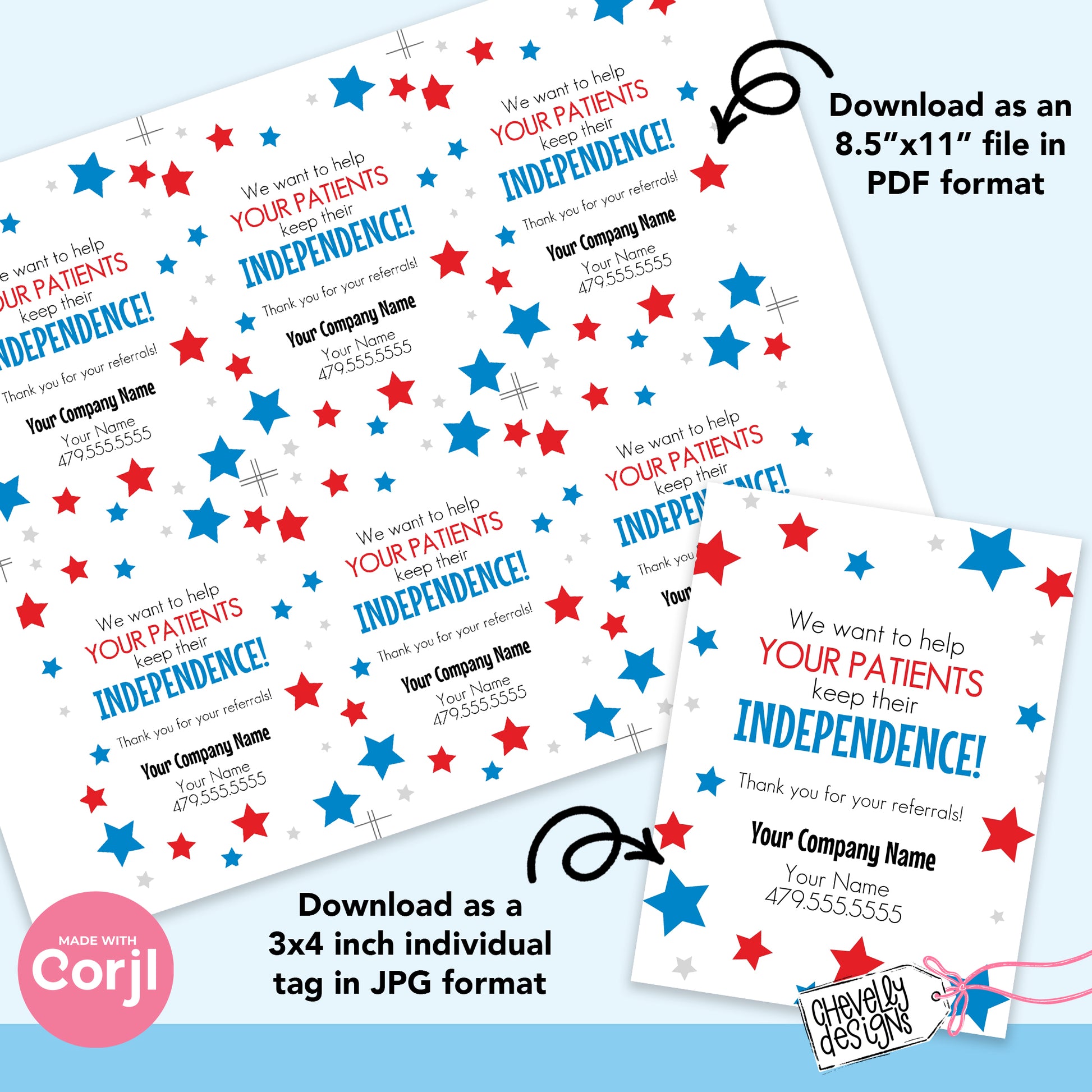 EDITABLE - Keep Their Independence - Referral Gift Tags - patriotic, 4th of July - Printable Digital File