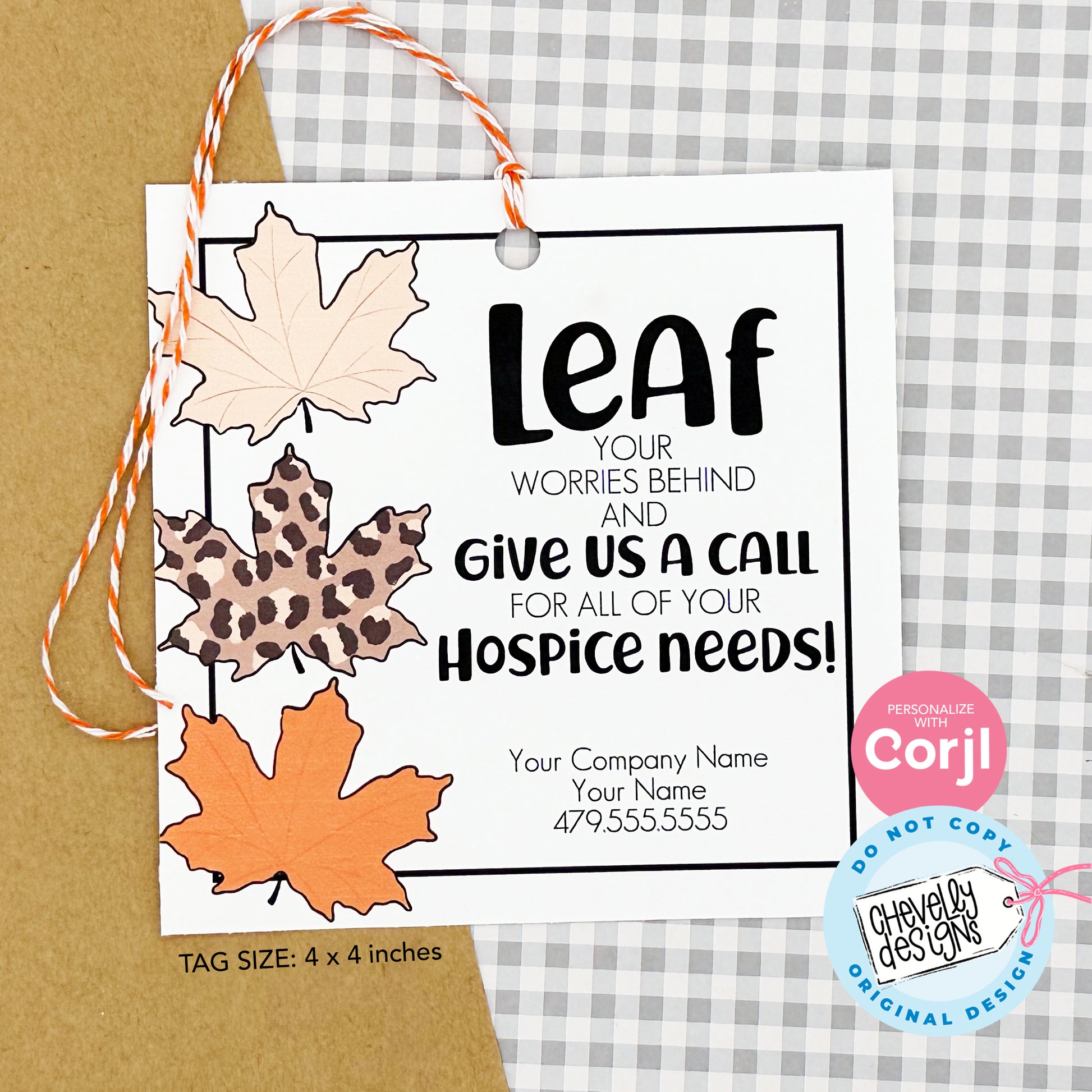EDITABLE - Leaf Your Worries Behind - Fall Hospice Referral Gift Tag - Printable Digital File