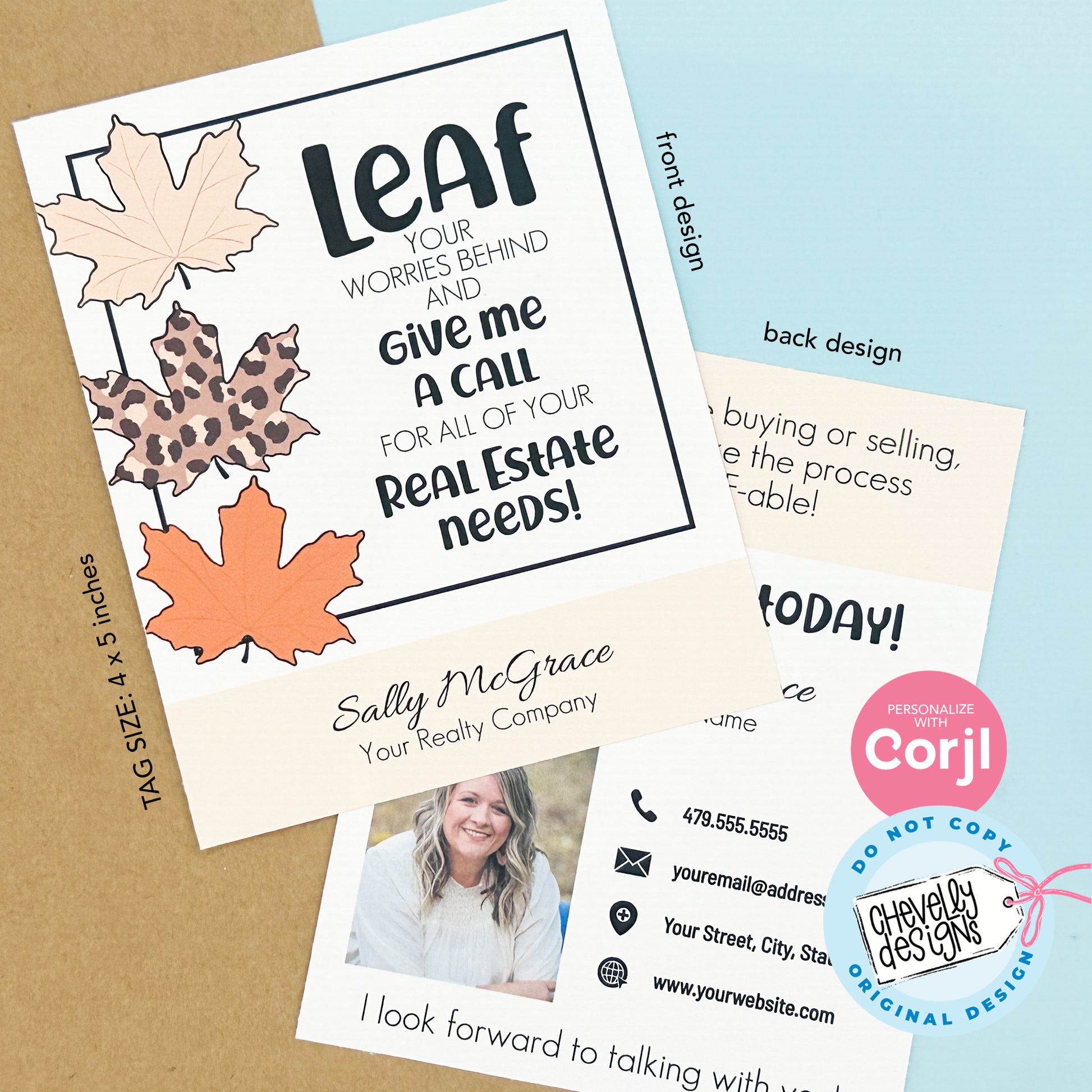 EDITABLE - Leaf Your Worries Behind - Real Estate Pop By Business Gift Tag - Printable Digital File