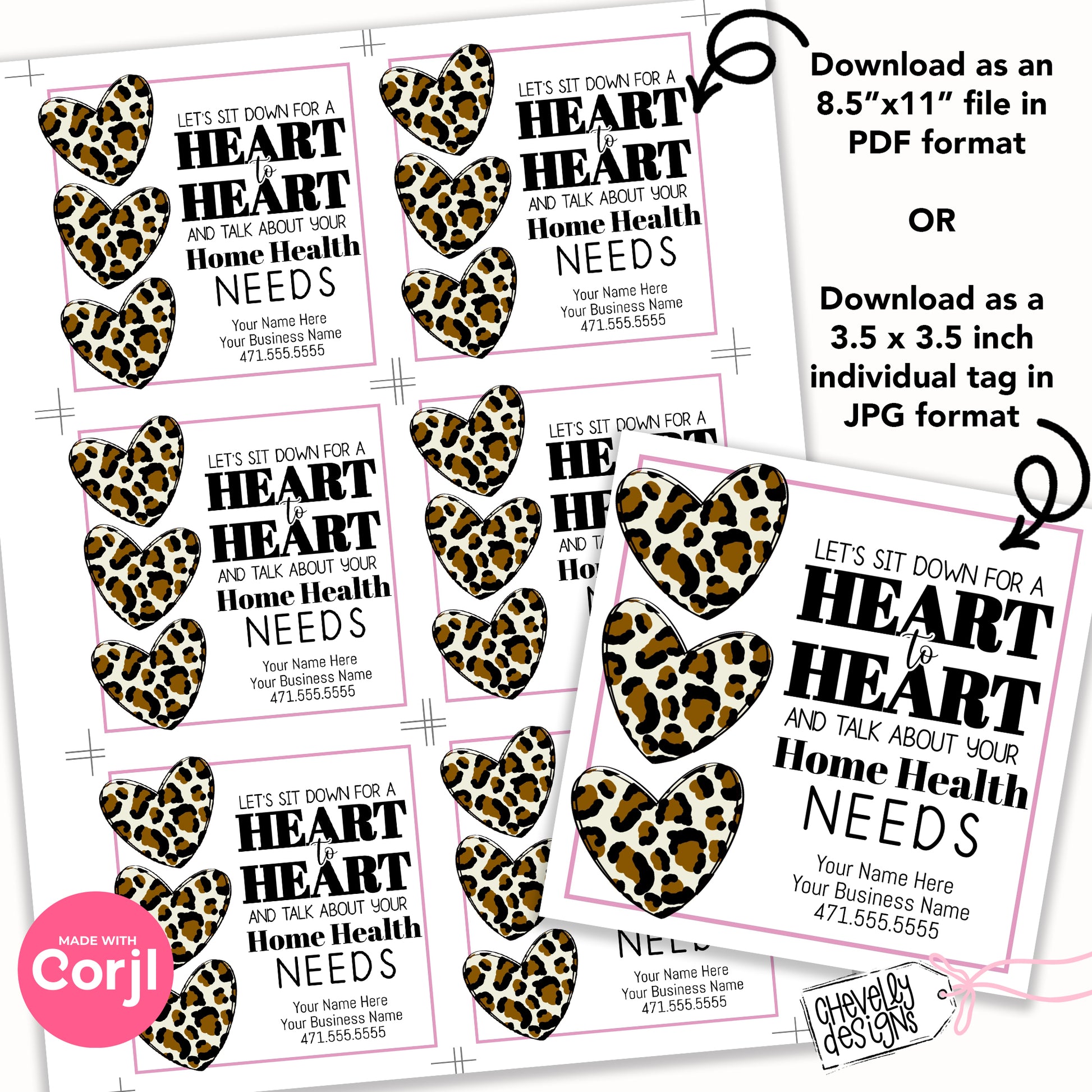 EDITABLE - Let's Have a Heart to Heart - Printable Referral Gift Tags - Digital File