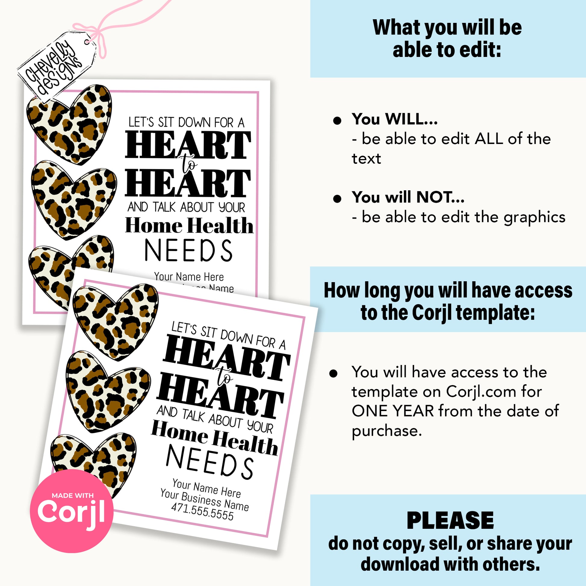 Let your clients know that you’re there for them with this special “Let’s Have a Heart to Heart” design. Perfect to use for referral gifts, this digital download comes with editable text and a light hearted design that’s sure to warm the hearts of your clients.