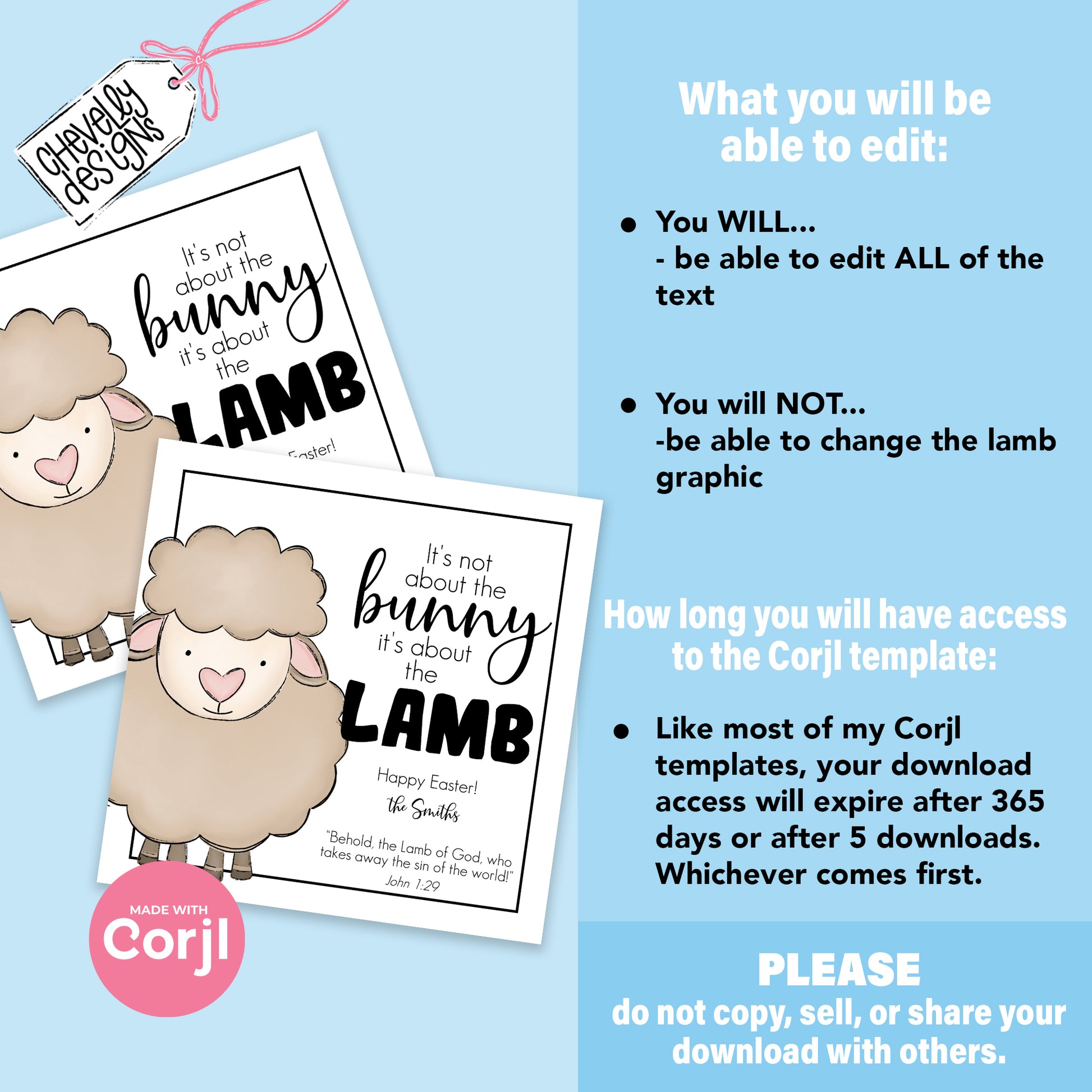 EDITABLE - Not about the bunny It's about the Lamb - Easter Treat Tags - Printable Digital File
