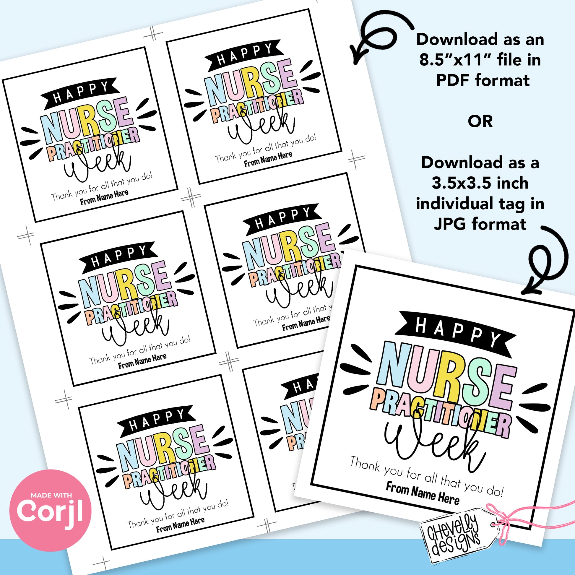 EDITABLE Nurse Practitioner Week Appreciation Gift Tag - Printable Digital File