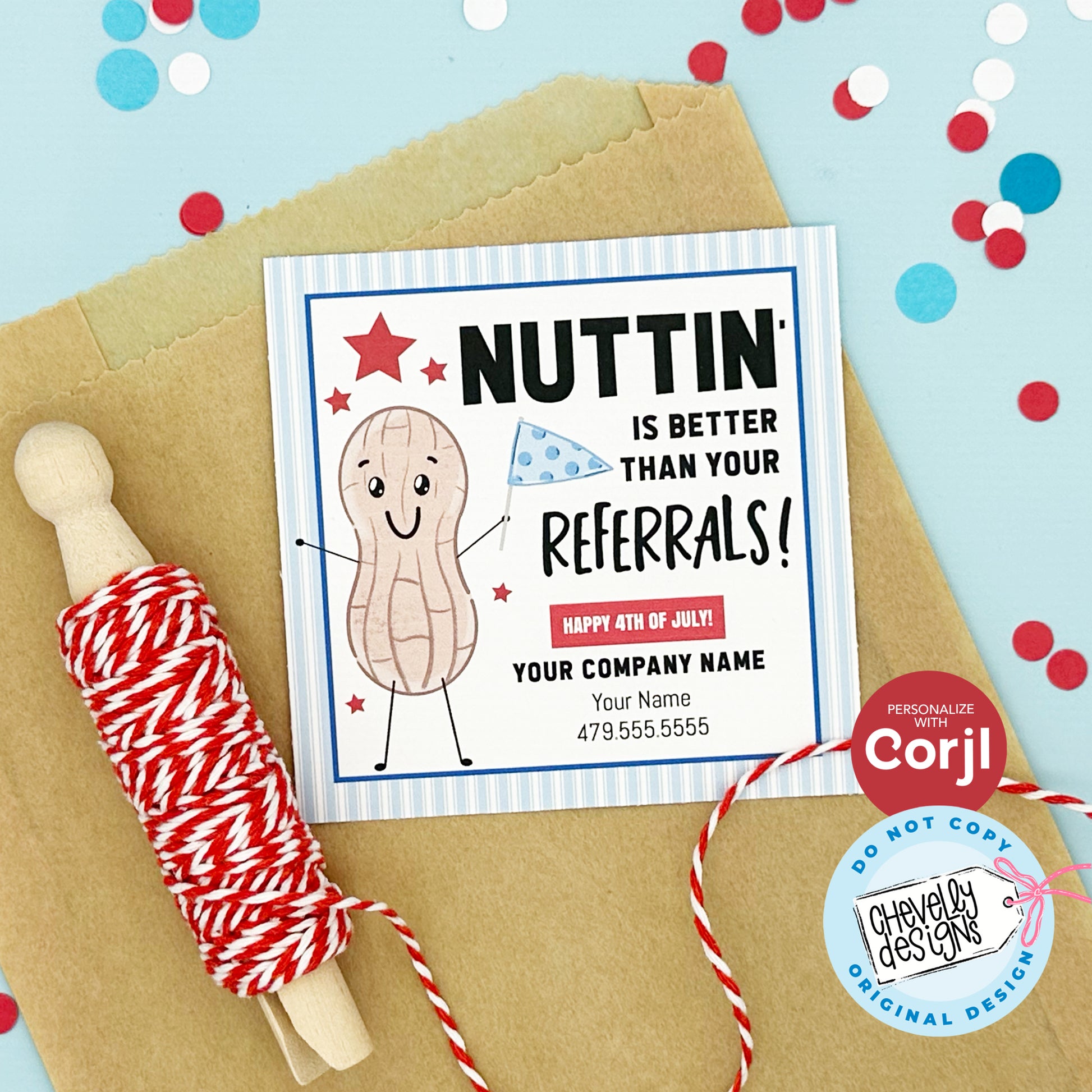 EDITABLE - Nuttin is better than your referrals - Patriotic Business Marketing Gift Tag - 4th of July - Printable Digital File
