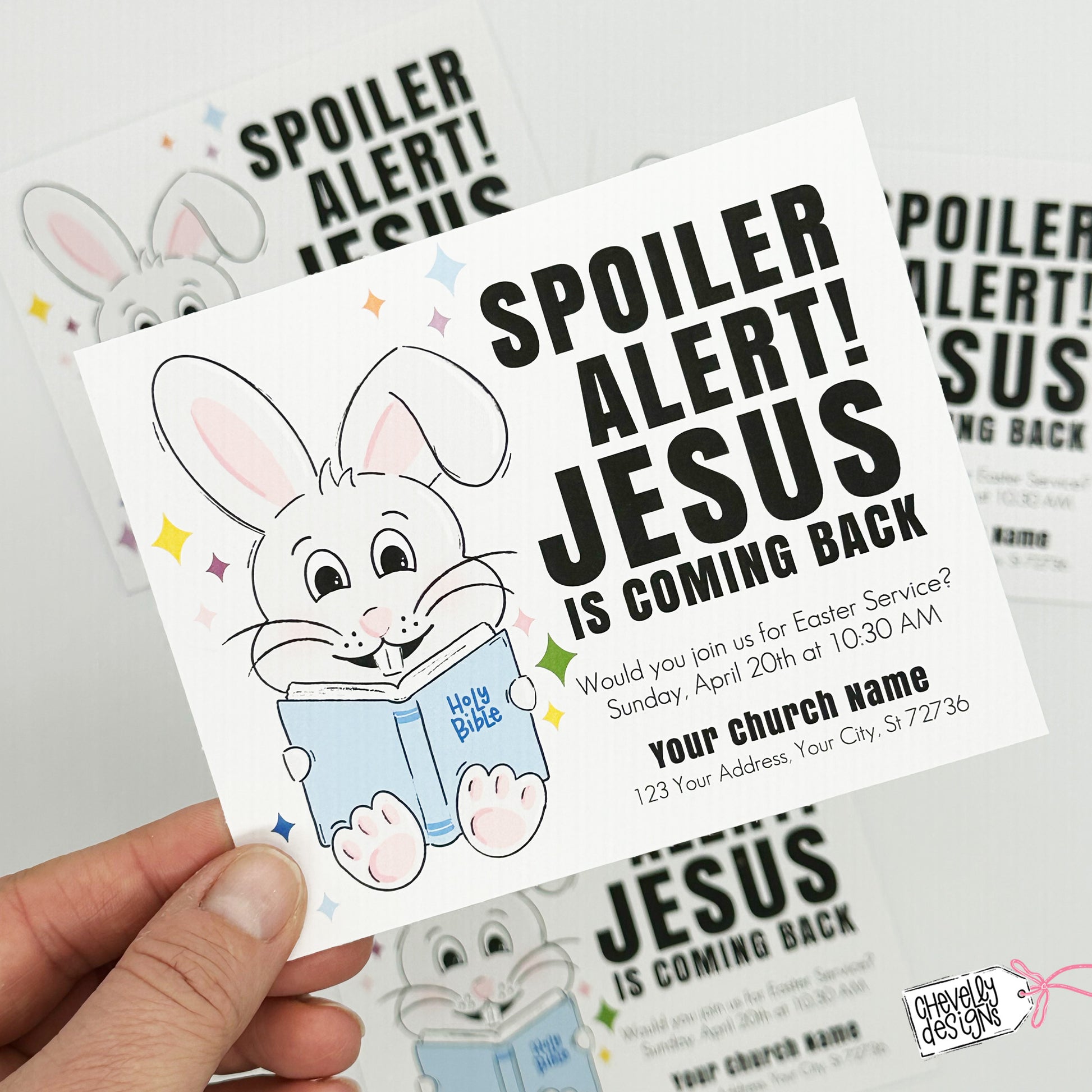EDITABLE Printable Easter Invitation Handout, Spoiler Alert Jesus is Coming Back