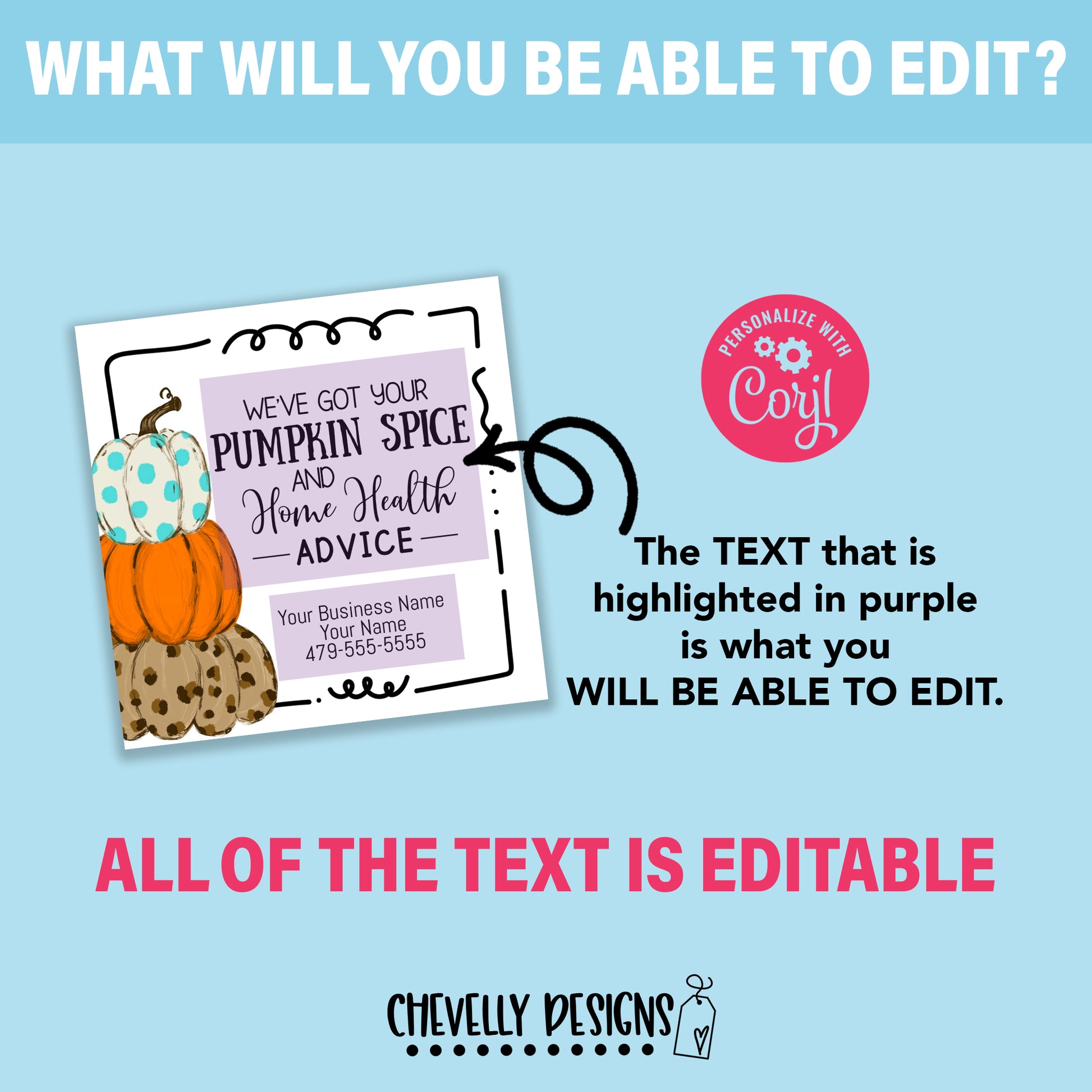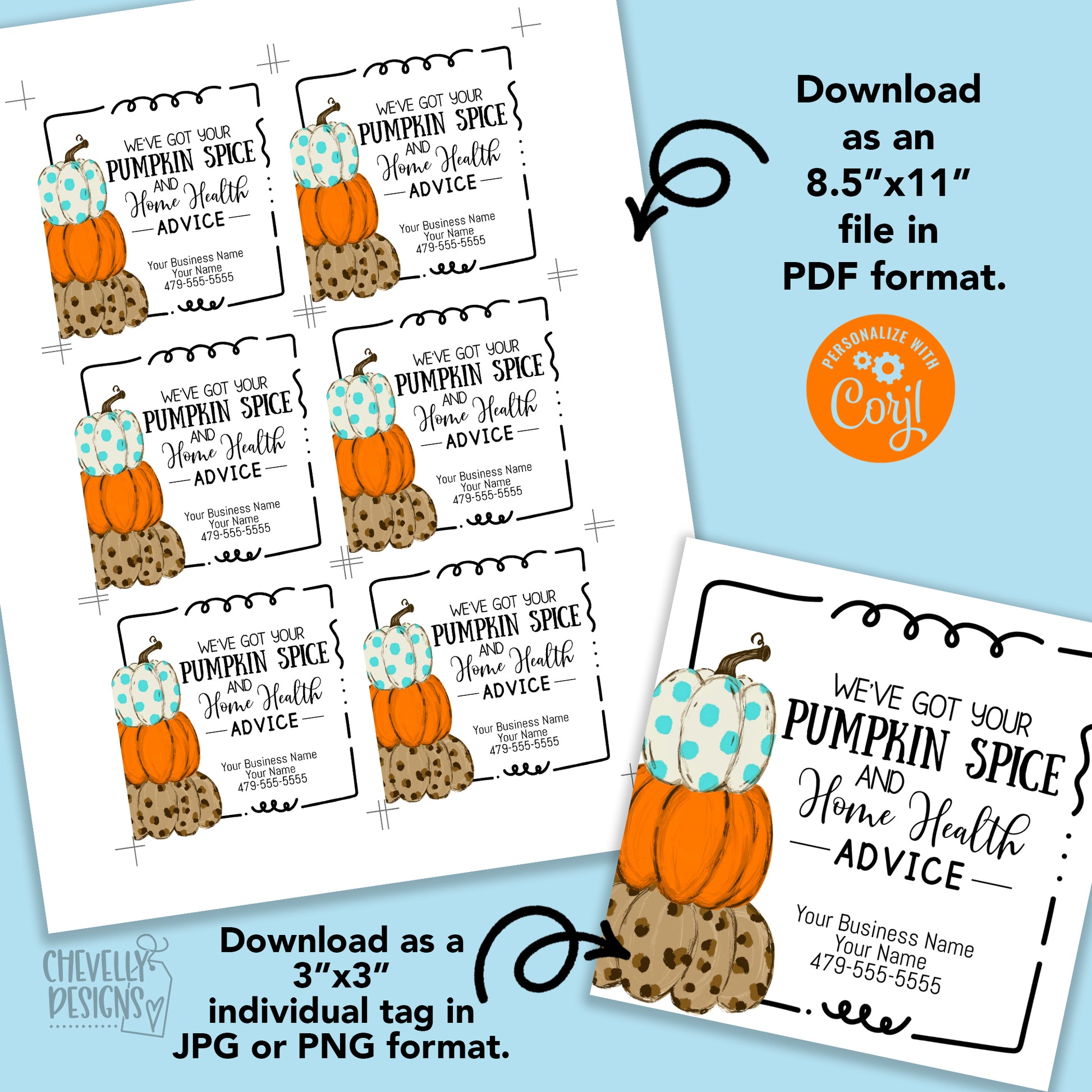 Editable - Pumpkin Spice and Home Health Advice - Business Referral Gift Tags - Printable Digital File