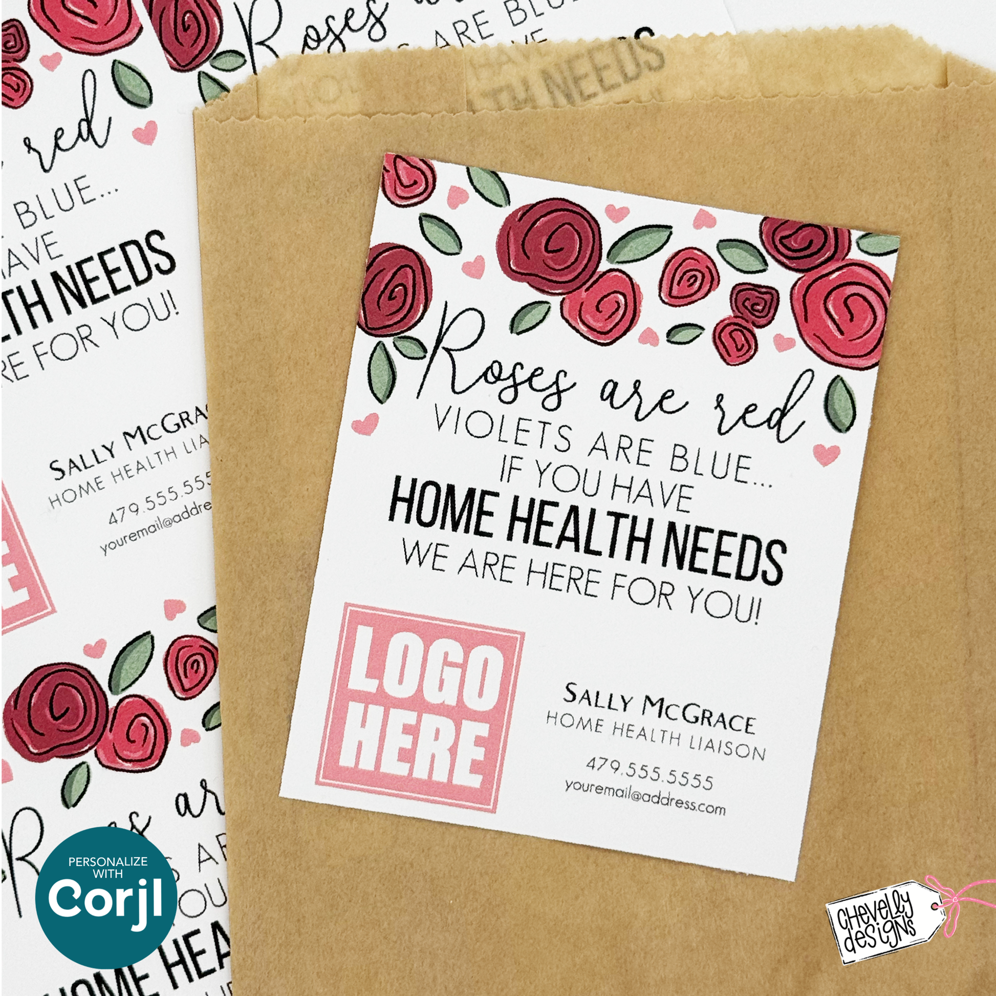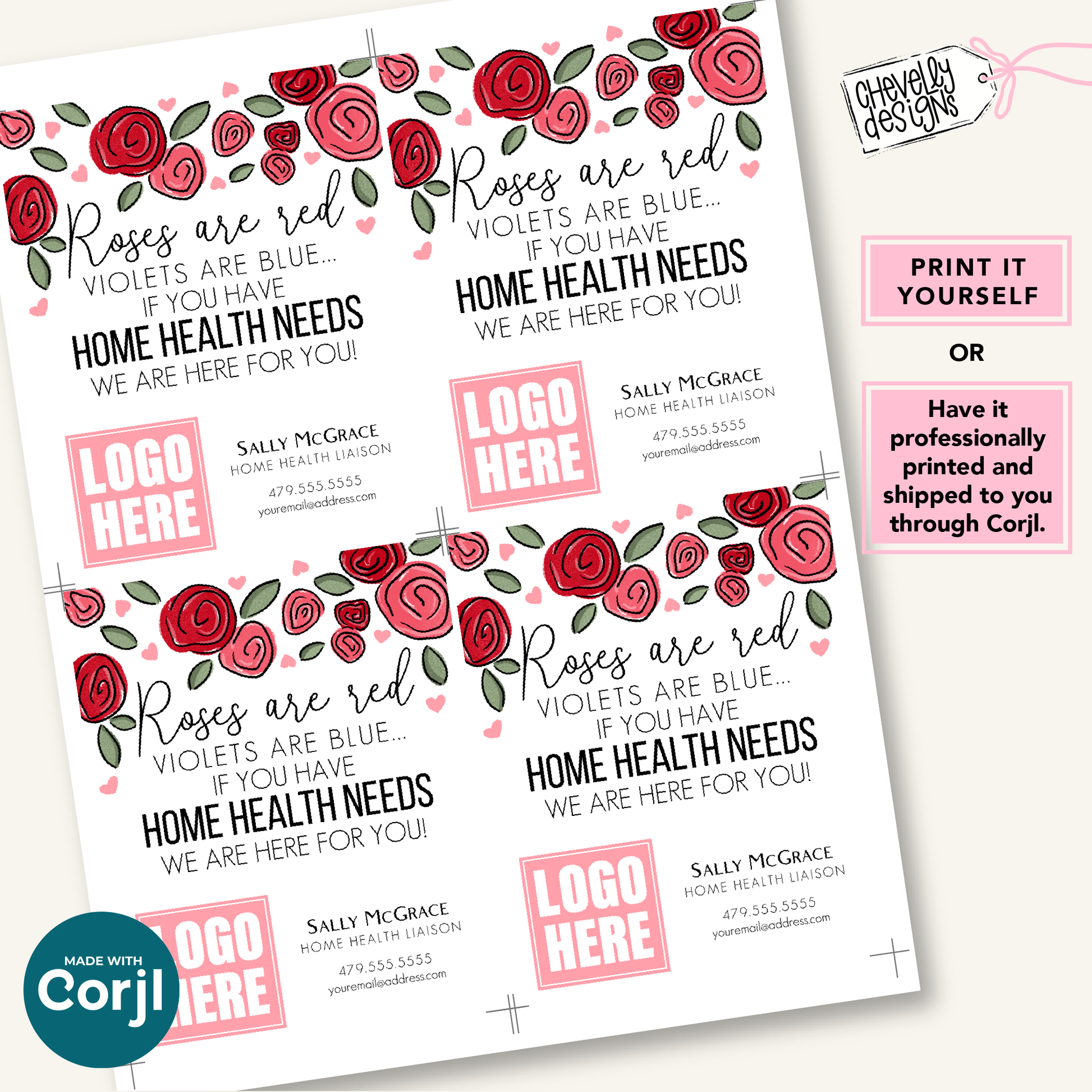 Editable Referral Gift Tag: Valentine Roses Home Health Marketing Label, Printable HTV014