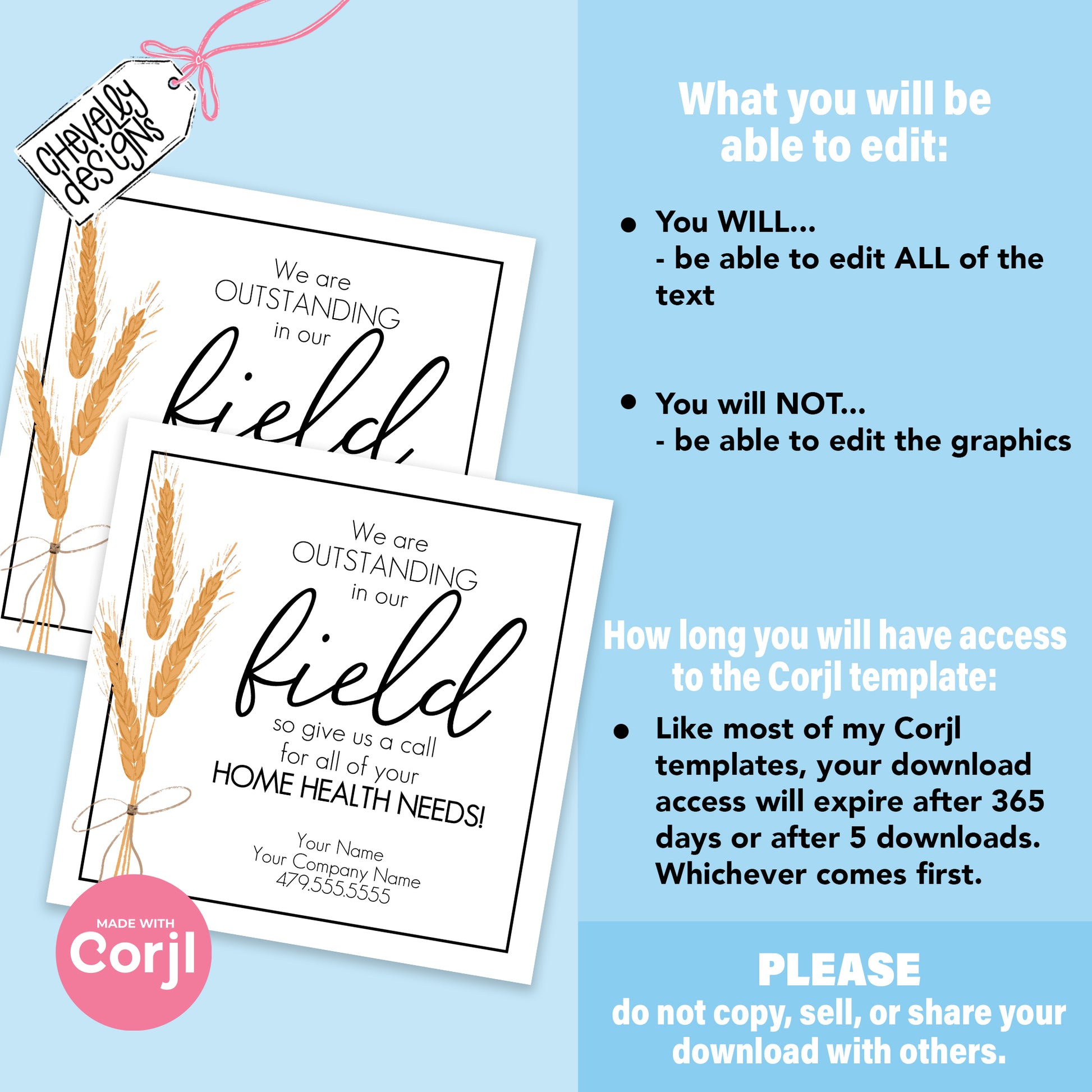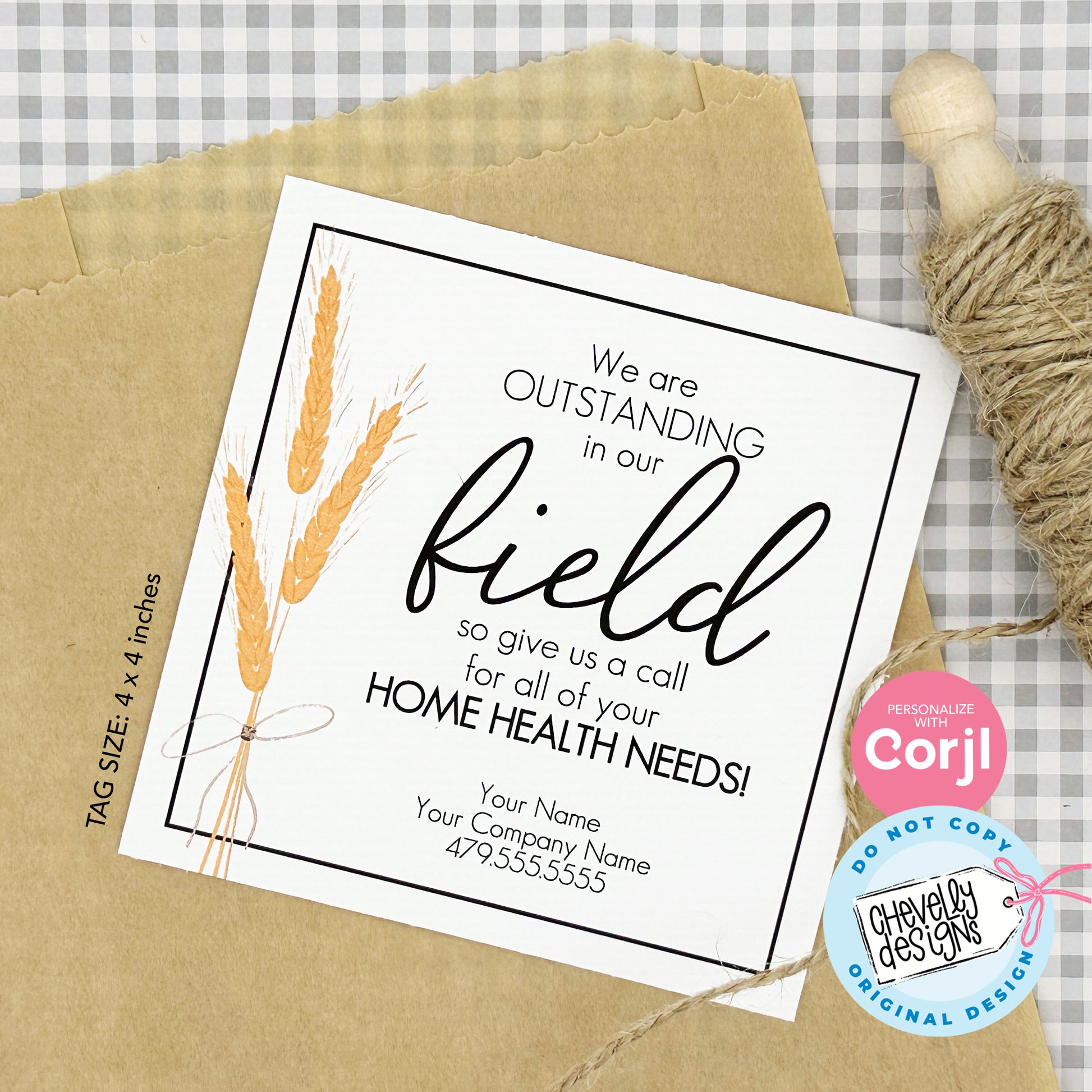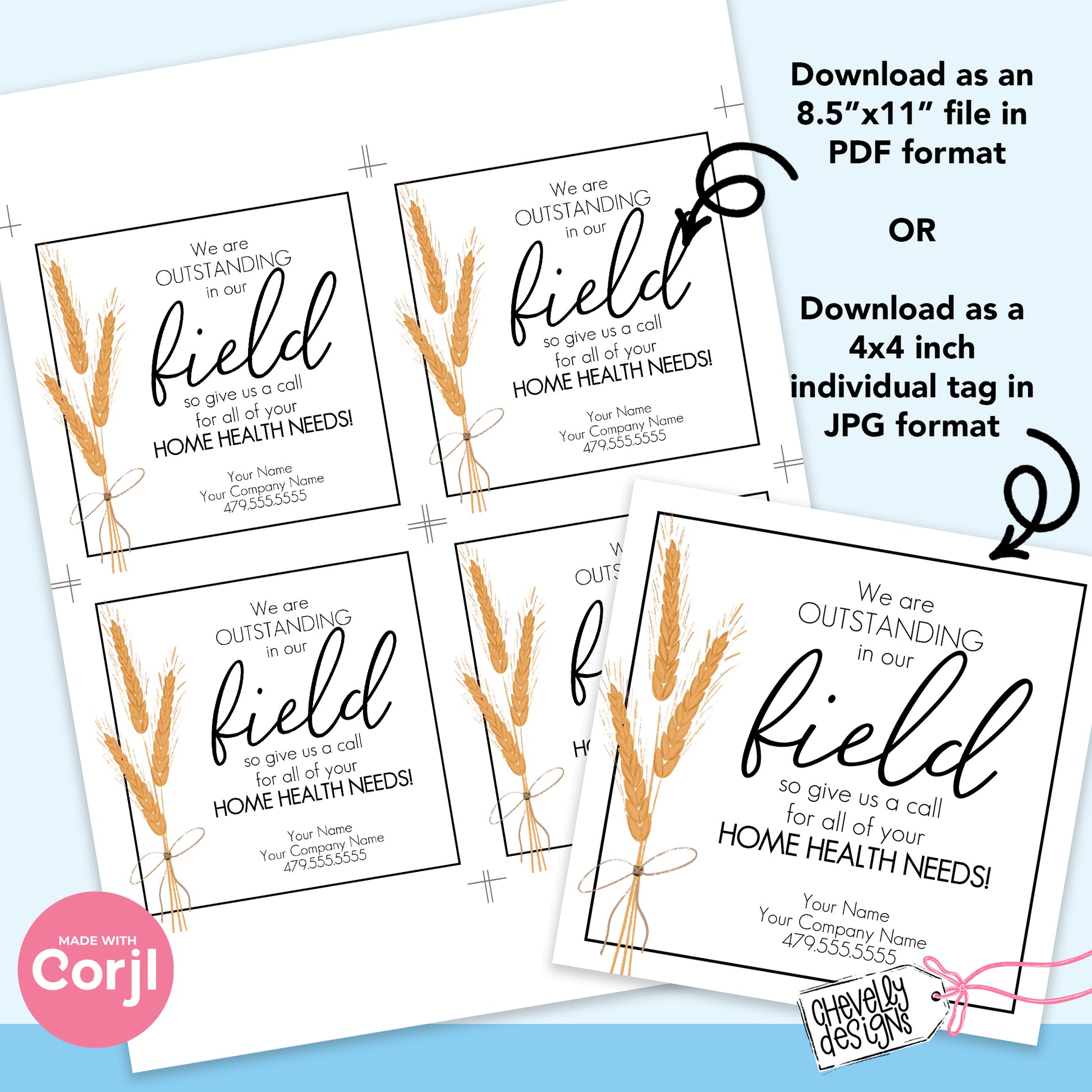 Editable Referral Gift Tags - Outstanding in our Field - wheat, fall - Printable Digital File