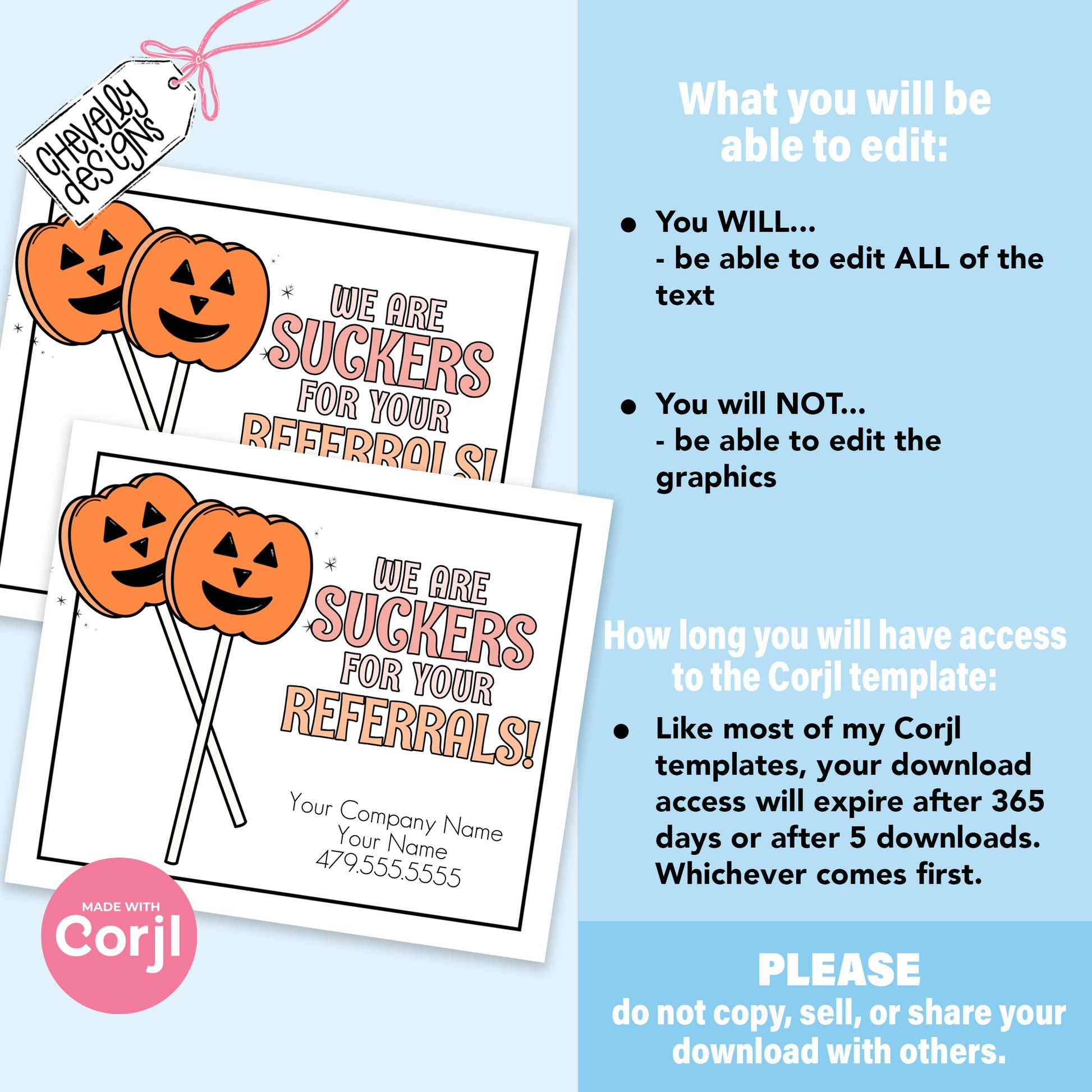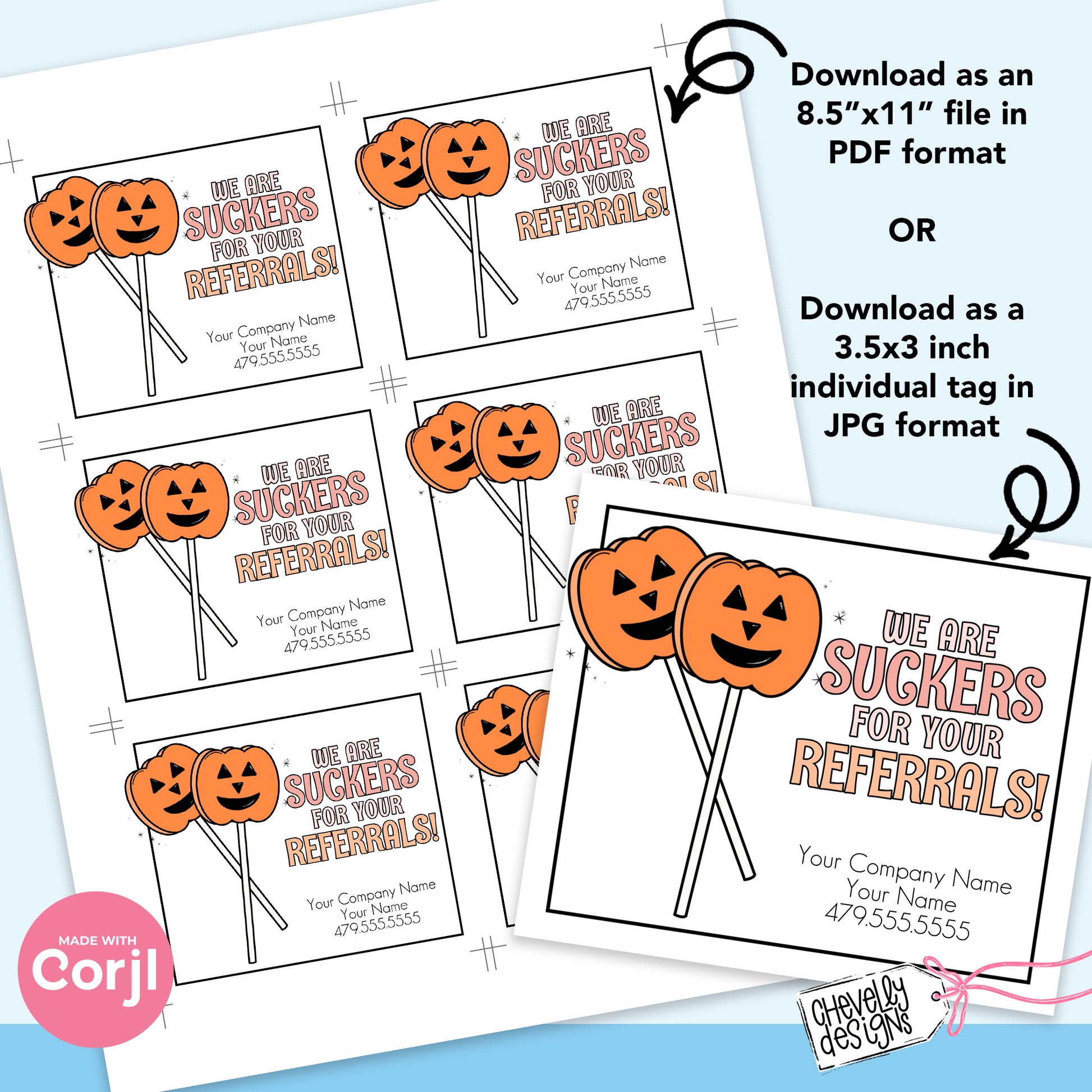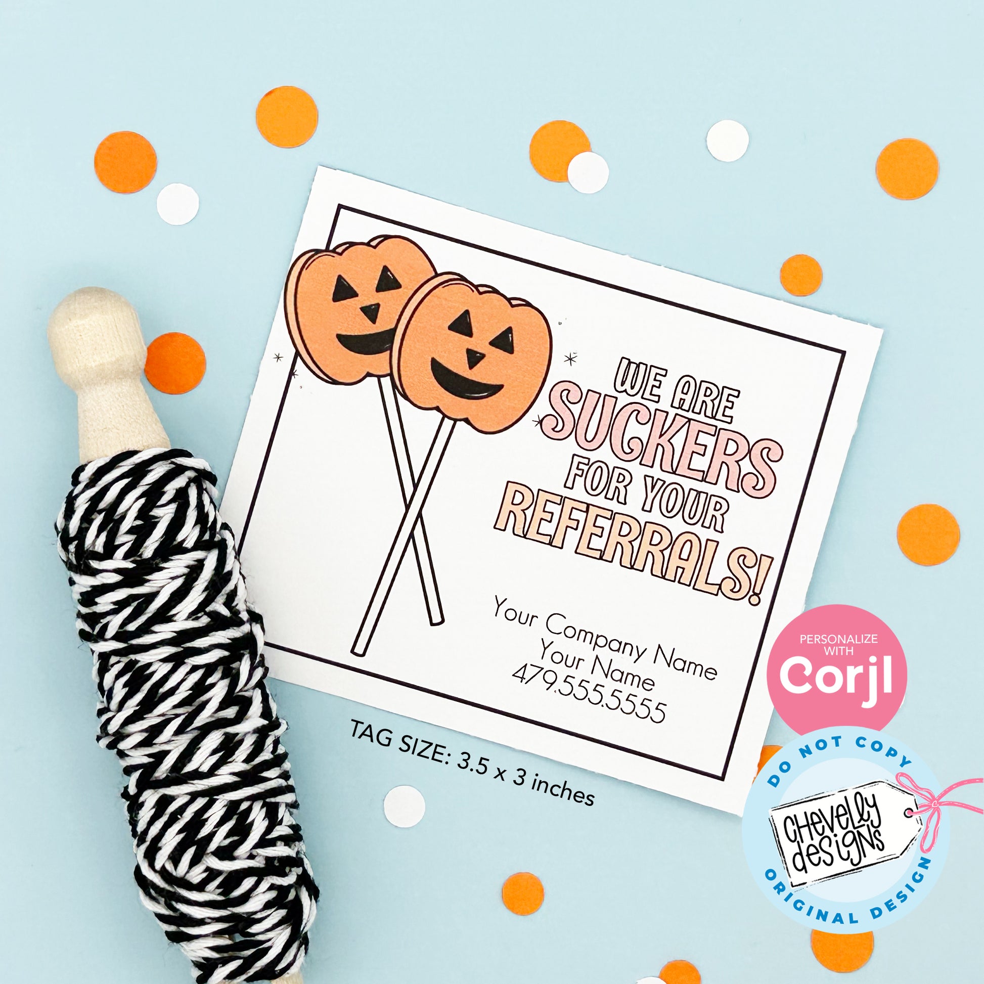 EDITABLE - We are Suckers for Your Referrals - Halloween Referral Gift Tag - Printable Digital File