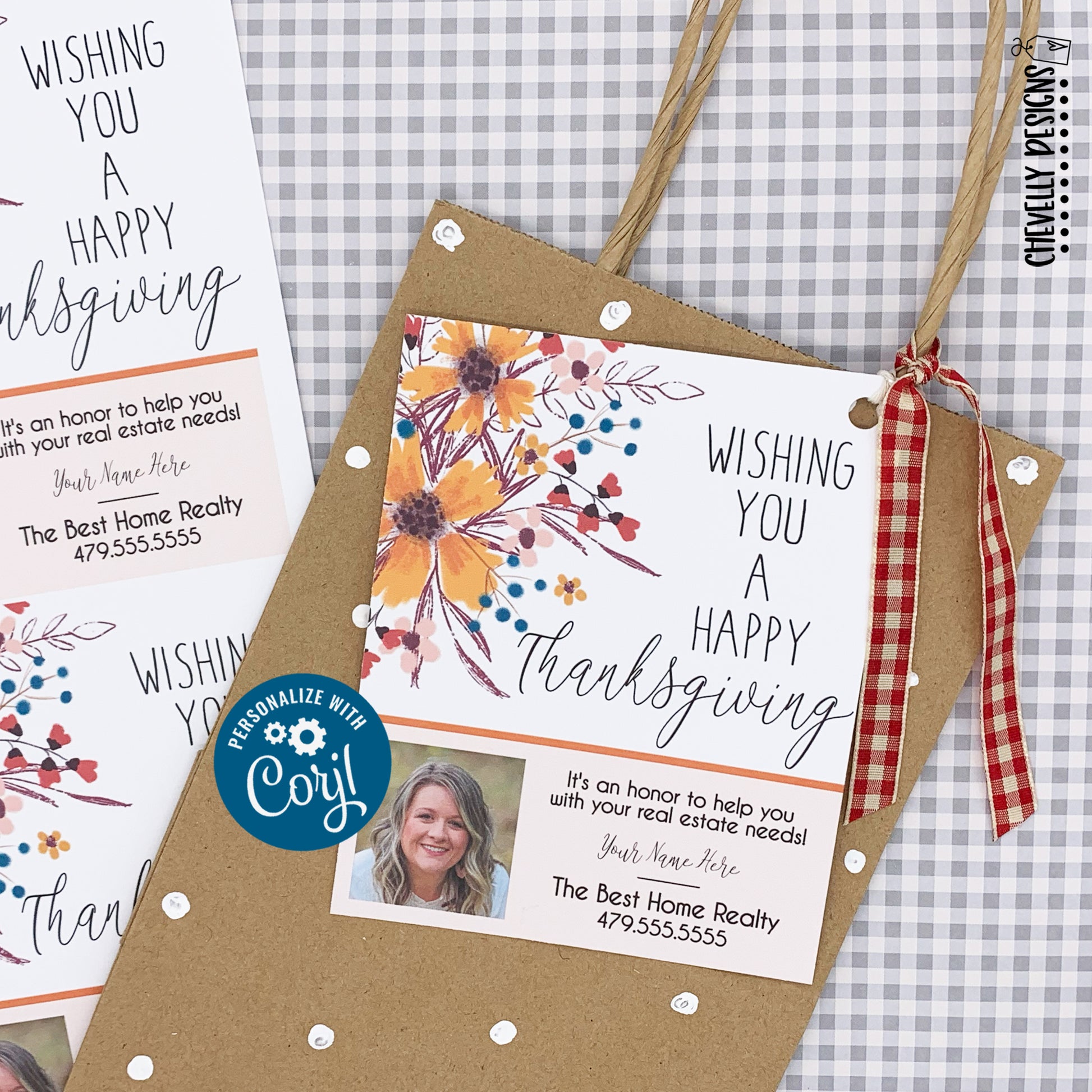 EDITABLE - Wishing You a Happy Thanksgiving - Business Referral Gift Tags - Printable Digital File