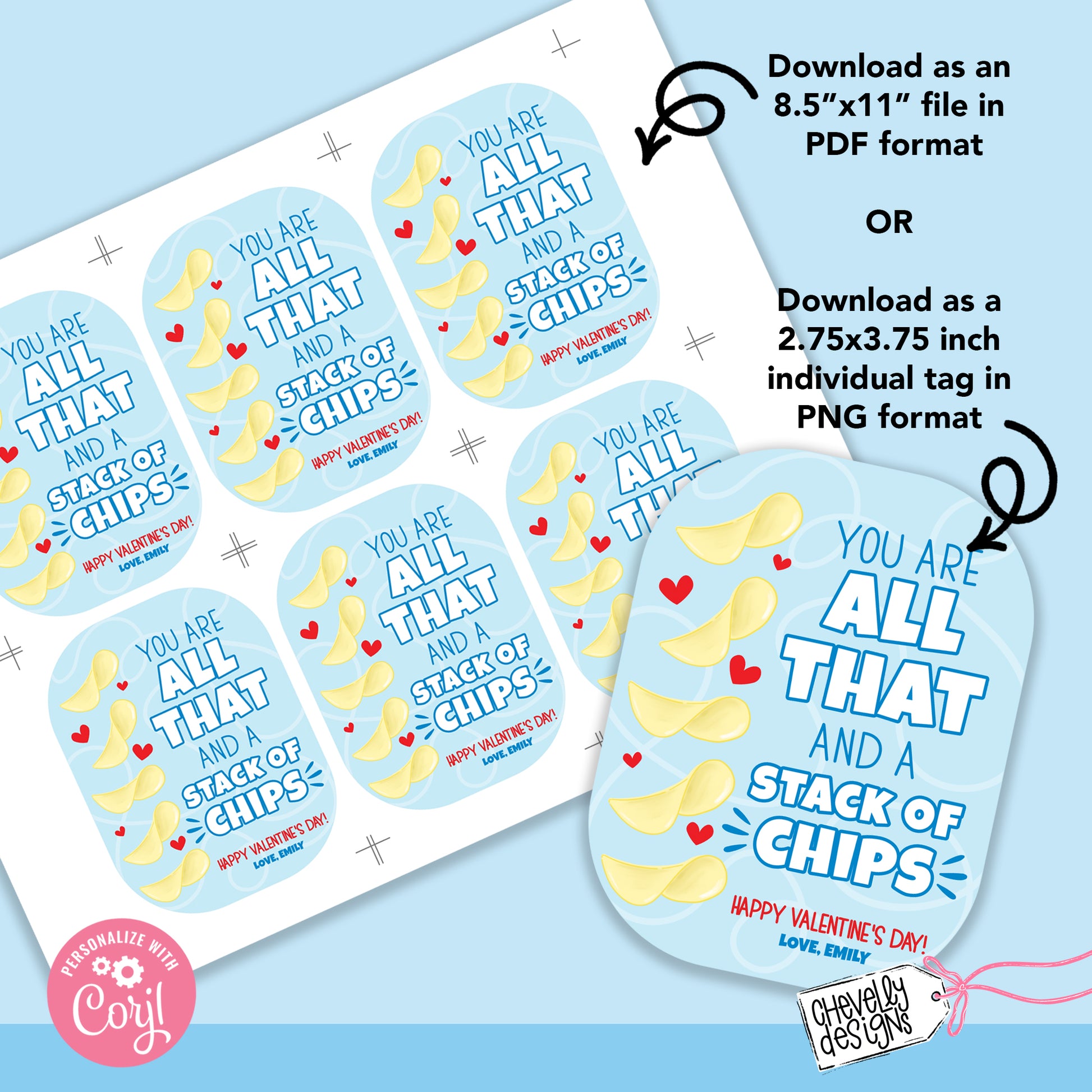 EDITABLE - You are all that and a stack of chips - Student Valentine Cards - Printable Digital File