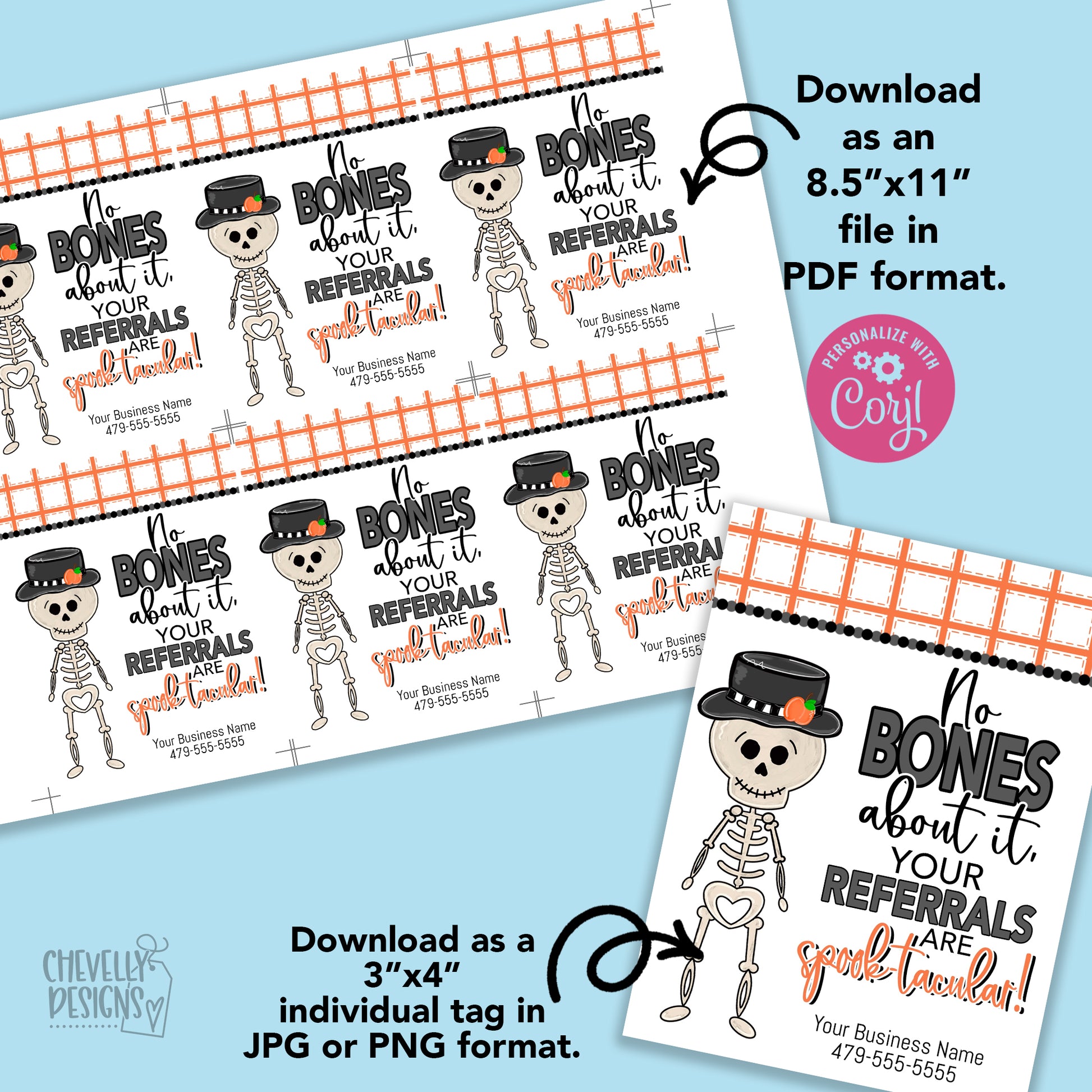 Editable - No Bones About It, Your Referrals are Spook-tacular - Business Gift Tags - Printable Digital File