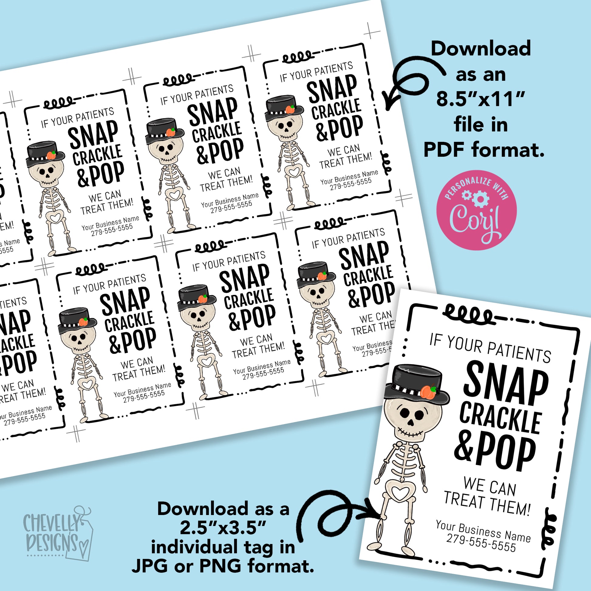 Editable - If Your Patients Snap Crackle and Pop - Business Referral Gift Tags - Printable Digital File